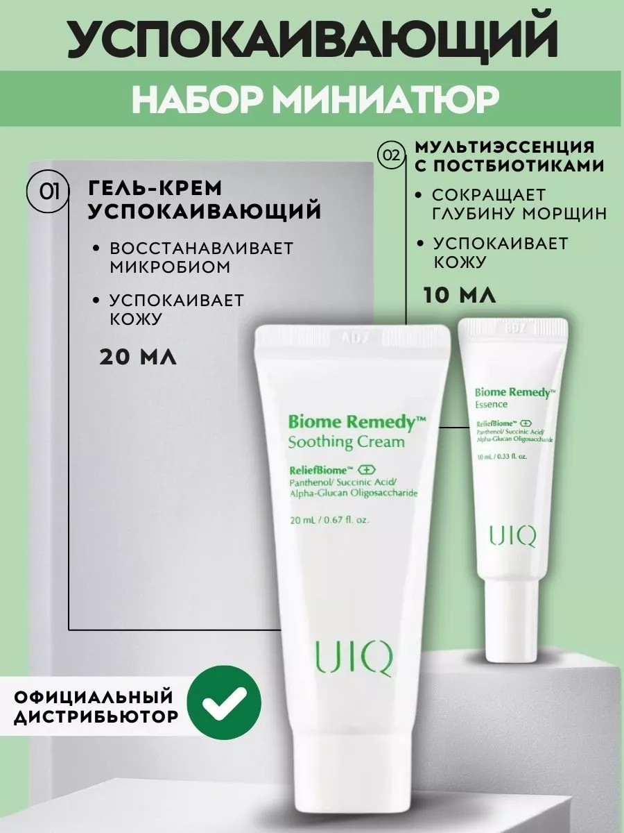 Набор миниатюр UIQ - это настоящая находка для комбинированной и жирной кожи с повышенной чувствительностью. Мощный комплекс пробиотиков третьего поколения восстанавливает барьер кожи, уменьшает количество высыпаний, снижает чувствительность кожи, насыщает её влагой, поддерживает упругость и молодость кожи. В нам входят два пробника продукта в дорожном формате, их удобно взять с собой в отпуск: гель крем для лица Biome Remedy Soothing Cream, 20 мл и сыворотка эссенция Biome Remedy Essence, 10 мл. Все продукты уменьшают проявление атопии, снимают воспаления и покраснения. Станут чудесным подарком по любому поводу для женщины или мужчины. Эту корейскую косметику можно использовать для ухода за кожей подростков с 12 лет. Все продукты можно использовать ежедневно. Подходят для жирной и комби кожи.