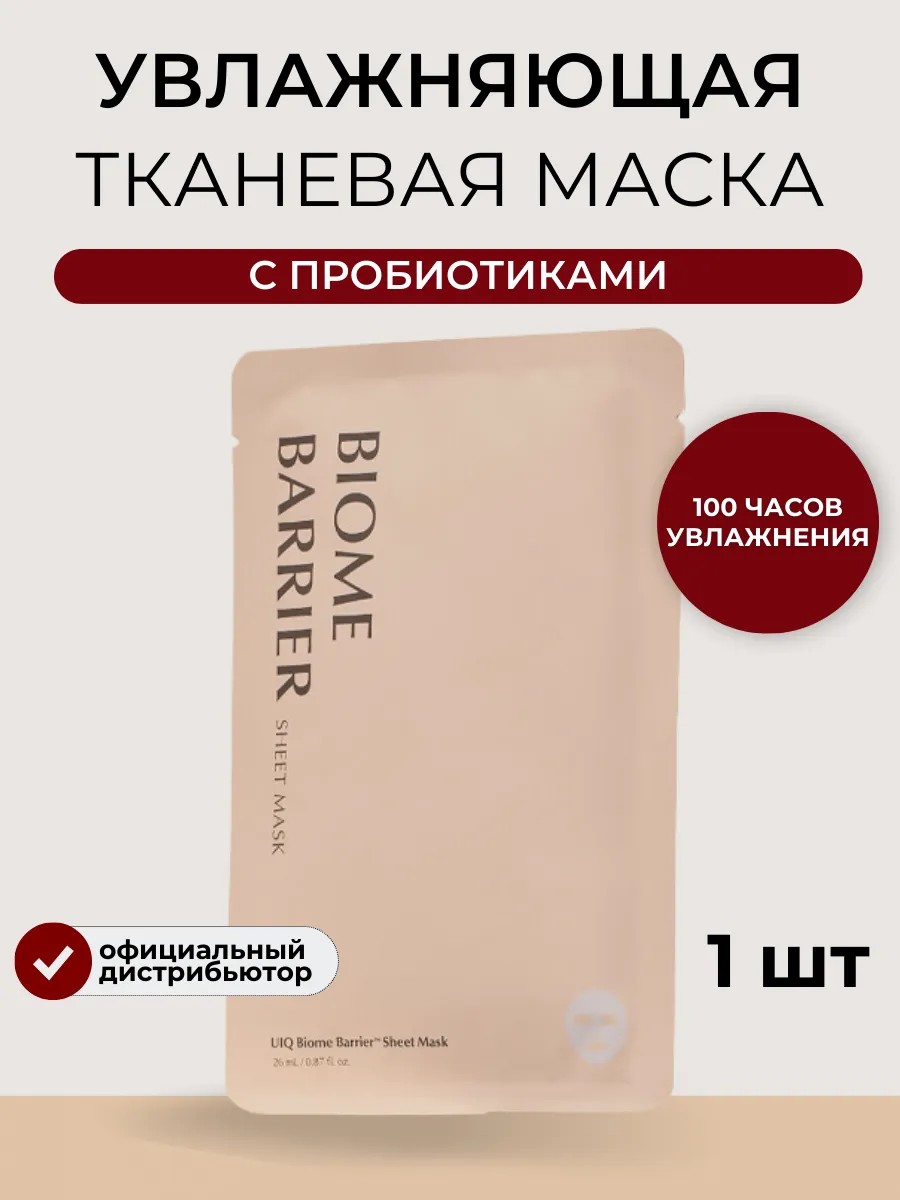 The UIQ Biome Barrier Sheet Mask, a moisturizing sheet mask with a third-generation probiotic complex, is designed to deeply nourish and restore skin. The innovative Korean cosmetics brand UIQ has developed a patented probiotic complex, CutiBiome, which strengthens the skin's protective barrier, relieves inflammation and redness, and reduces breakouts, flaking, and irritation. Probiotics also have an anti-aging effect, increasing skin firmness and elasticity, effectively treating mature skin with age-related changes, and smoothing wrinkles. Niacinamide helps tighten pores, reduce shine, and normalize sebum production. Centella soothes and deeply moisturizes the skin, helps fight acne, and strengthens blood vessel walls, which is especially important for rosacea. This sheet mask is suitable for both men and women. Looking for a gift for a woman? This is an ideal and useful option that will surely please everyone, whether it's your mom, a colleague, or a friend. This Korean face mask will provide high-quality skin care and maintain a youthful appearance for years to come.