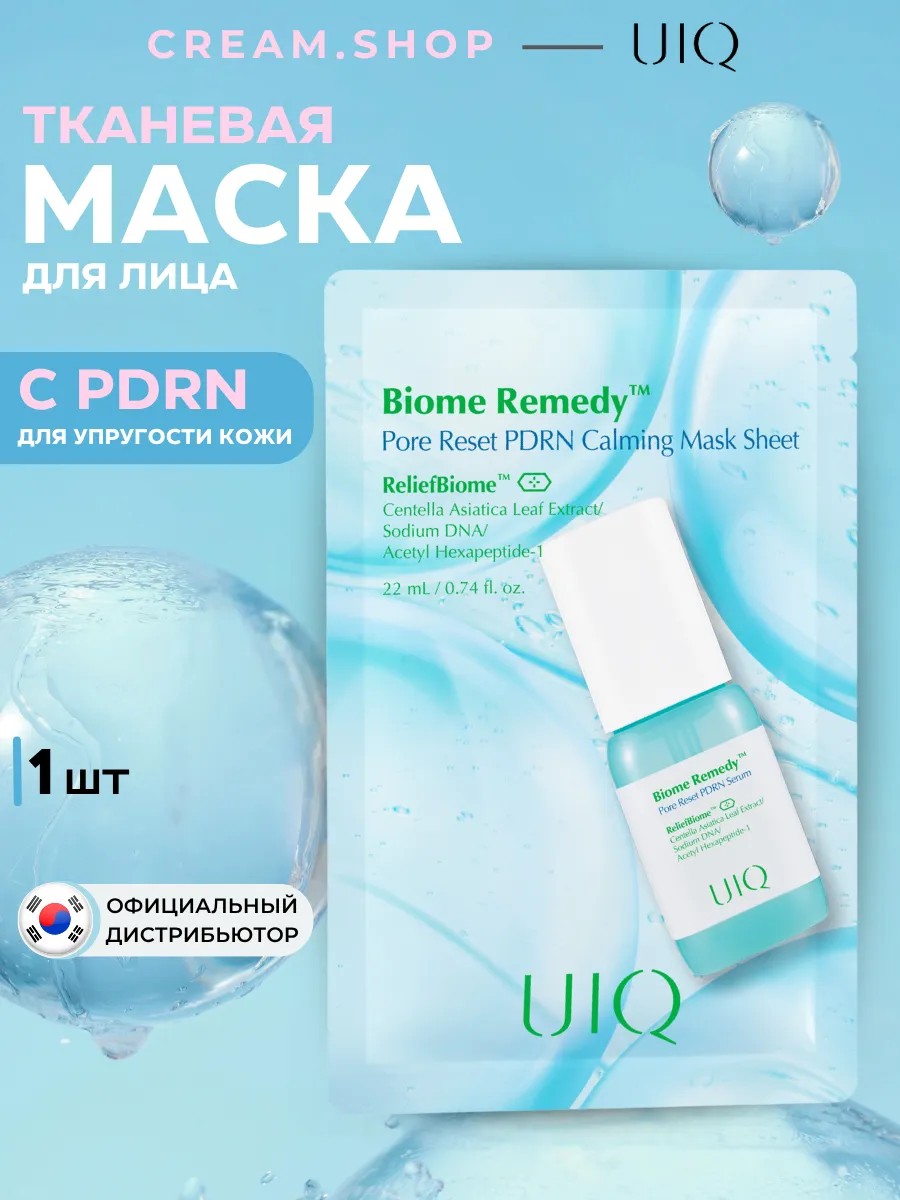Увлажняющая тканевая маска для лица из Кореи UIQ Biome Remedy Pore Reset PDRN Calming Mask Sheet, которая станет вашим верным помощником в борьбе с возрастными изменениями и проблемами кожи. Каждая маска содержит: