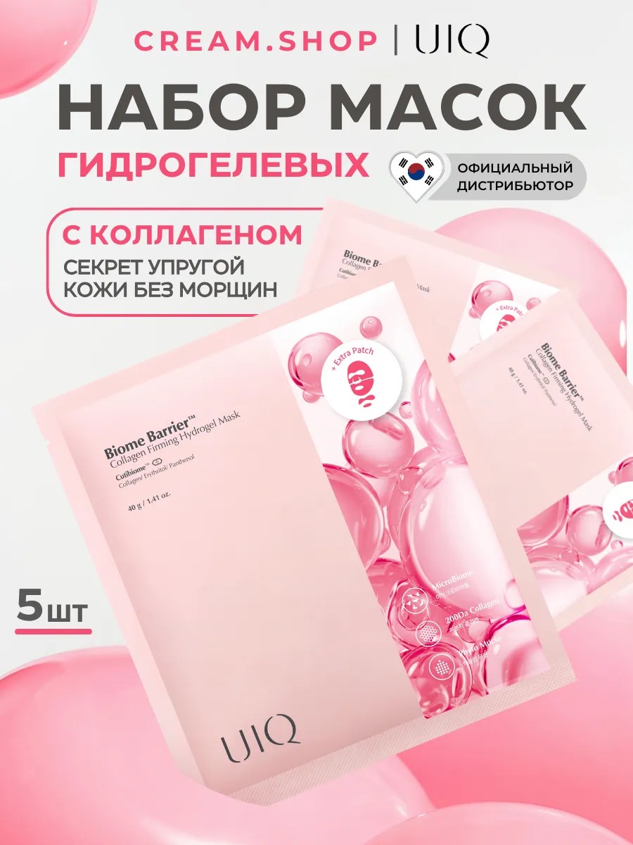 UIQ Маски для лица гидрогелевые, набор 5 шт, с коллагеном, Корея