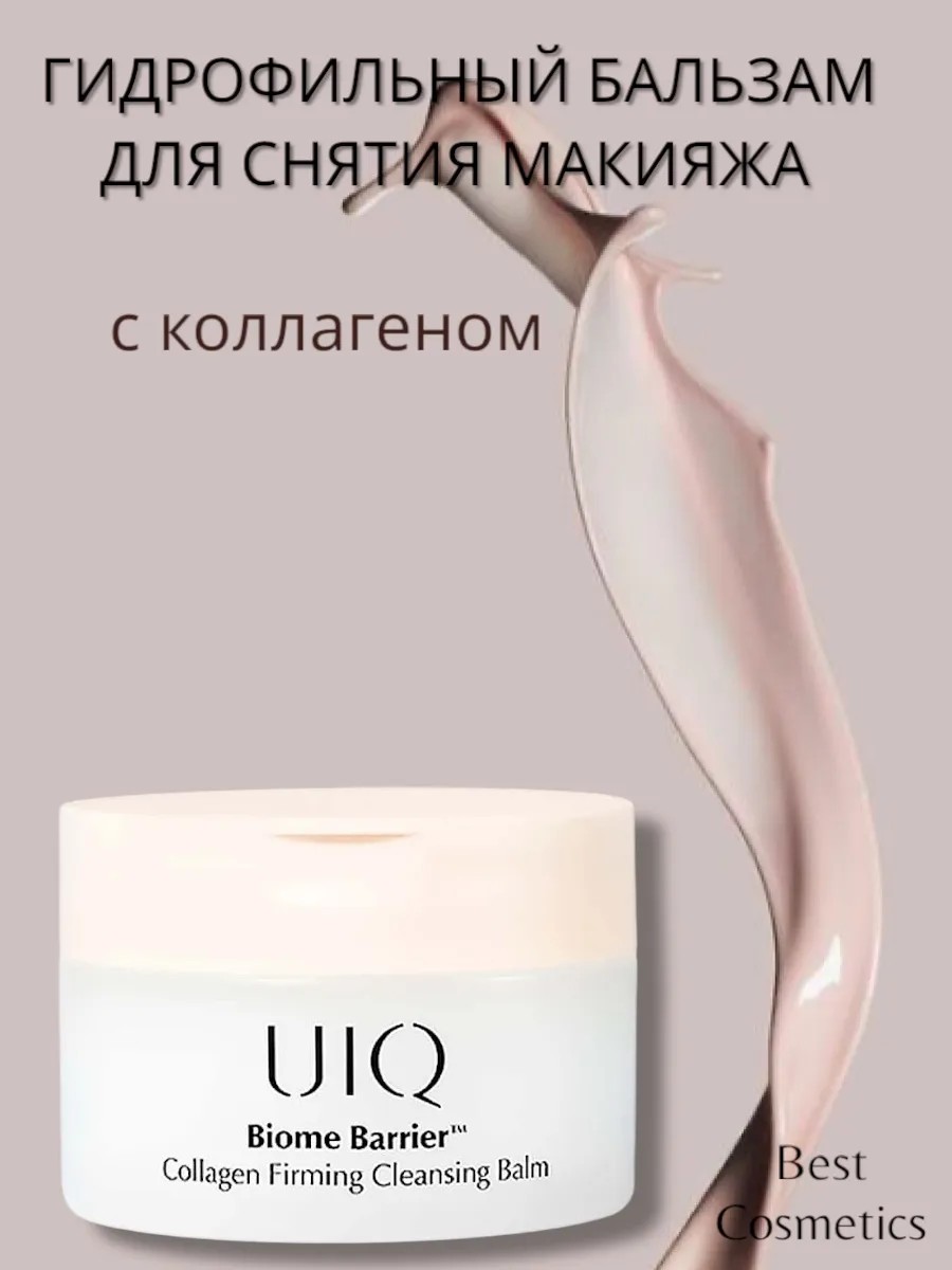 Гидрофильный бальзам UIQBiome Barrier Collagen Cleansing Balm мягко тает на коже, удаляя водостойкий макияж, тушь и другие пигментированные продукты. Растворяет загрязнения в порах, предотвращает появление чёрных точек и закупорку пор.