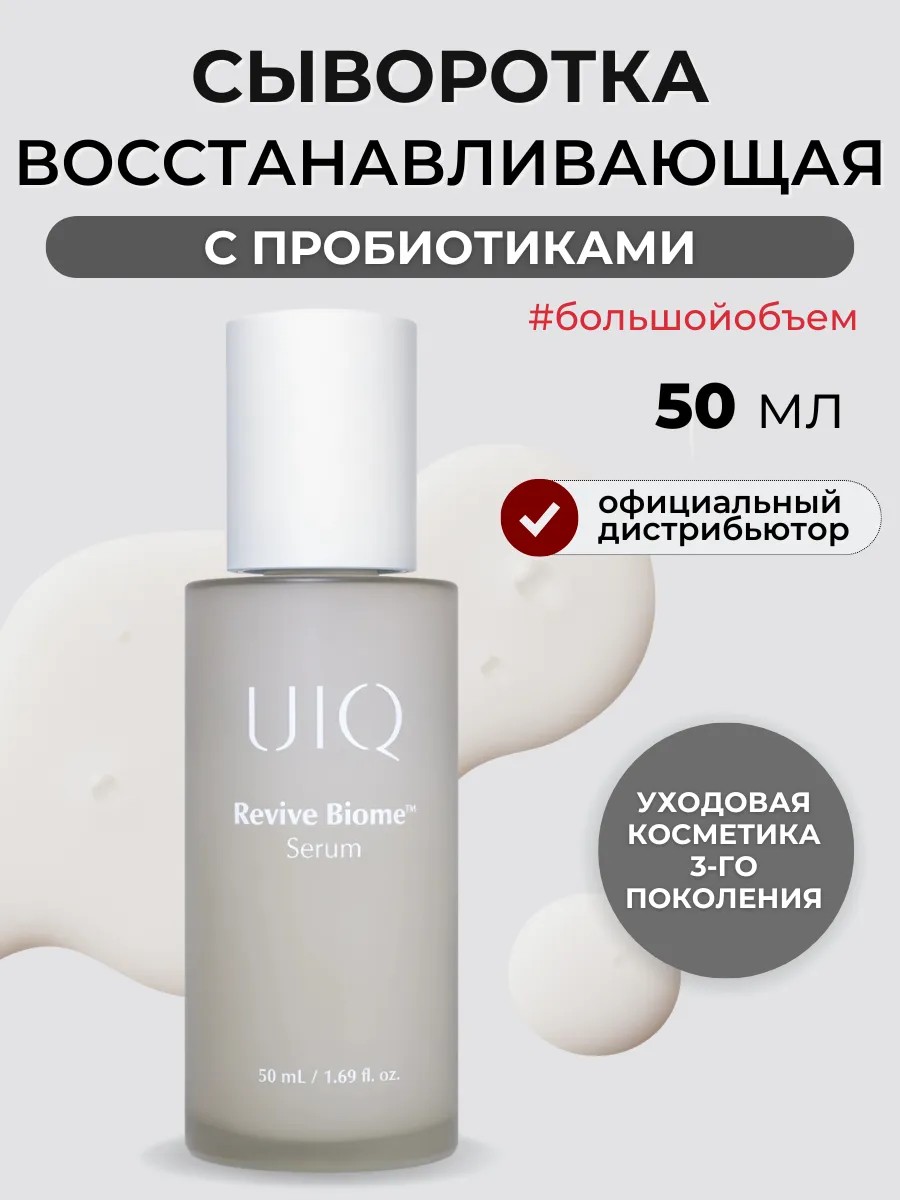 Увлажняющая сыворотка для лица с пробиотиками Revive Biome Serum от инновационного корейского бренда UIQ. идеальное решение для полноценного ухода за вашей кожей. Сыворотка деликатно, но эффективно работает на сухой, чувствительной и проблемной коже с высыпаниями. Она не только увлажняет, но и уменьшает воспаления и покраснения, оздоравливает микробиом, предотвращая появление новых высыпаний. Ключевой компонент продукта комплекс пробиотиков CutiBiome. Пробиотики активизируют естественные защитные функции кожи, укрепляют ее иммунитет и способствуют омоложению и избавлению от прыщей. Эктоин тормозит процессы старения и защищает ДНК, сохраняет увлажненность до 7 дней. Эктоин защищает от вредного воздействия окружающей среды и УФ-излучения. Молочная кислота мягко обновляет кожу, улучшает микрорельеф, выравнивает цвет лица и повышает увлажненность. Благодаря уникальной формуле, сыворотка глубоко проникает в кожу, улучшая ее структуру и разглаживая морщины. Вы почувствуете, как ваша кожа становится нежной и эластичной уже после первого применения. UIQ это инновационный бренд корейской косметики с научно доказанными формулами и гипоаллергенными составами, которые содержат высокоэффективные пробиотики 3 поколения.