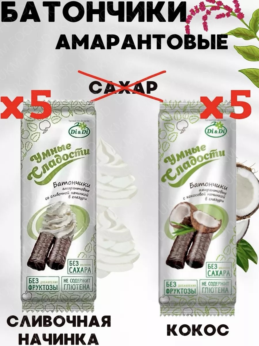 | Вид батончика | амарантовый, амарант; кокос,кокосовый, ягодный; сливочный,сливки,лесные ягоды |