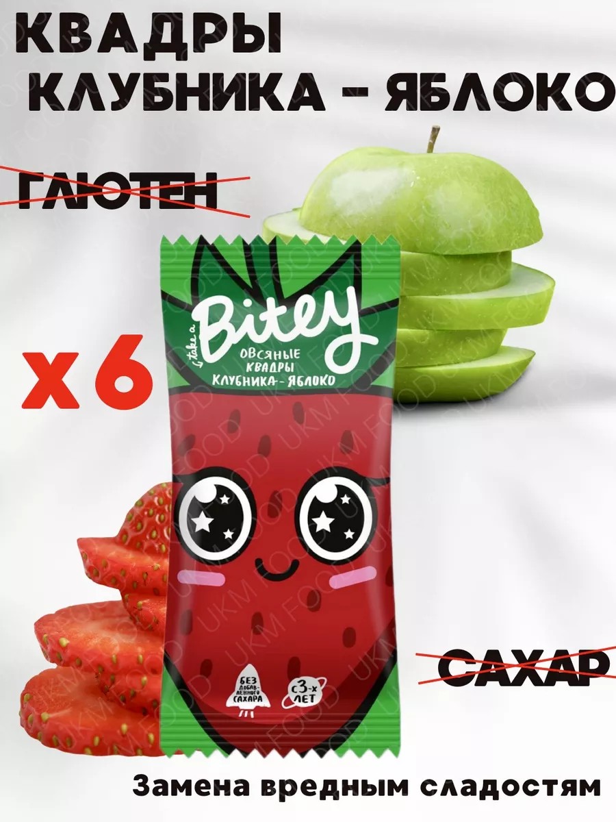 | Комплектация | Детский батончик без сахара Bitey Яблоко-Клубника 6 штук; Детский батончик байт; батончики без сахара; Овсяный батончик без сахара Квадры Яблоко-Клубника 6 штук |