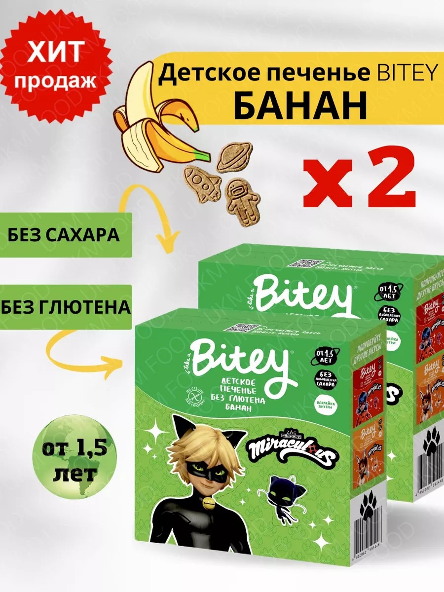 Bitey "BANANA" Cookies from UKM FOOD are a sweet treat everyone loves! These cookies are perfect for children ages 1.5 and up. Natural ingredients, vitamins, and calcium are perfect for the littlest sweet tooths and allergy sufferers! Featuring characters from the famous cartoons, Ladybug and Cat Noir, on the packaging. These cookies are free of added sugar, gluten, lactose, soy, and preservatives. They're vegan-friendly, and most importantly, they're loved by both kids and adults! Sweets and treats for everyone! They're the perfect snack—take them to school, work, or a walk in the park to get a boost of energy and mood for the day! That's why sugar-free Bite cookies are the choice of athletes, healthy lifestyle advocates, and anyone who promotes a healthy lifestyle. They're also an excellent sweet treat for weight loss, as they contain no sugar, preservatives, or artificial ingredients—the perfect snack for beauty and health! BON APPETIT! Sincerely, UKM FOOD!