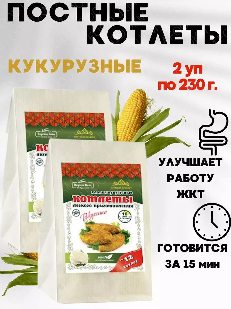| Комплектация | Постные котлеты из белой КУКУРУЗЫ; Постные котлеты из белой кукурузы ,2 упаковки по 230 г; Постные котлеты из белой кукурузы чеснок и специями; веганские котлеты; котлеты в пост |