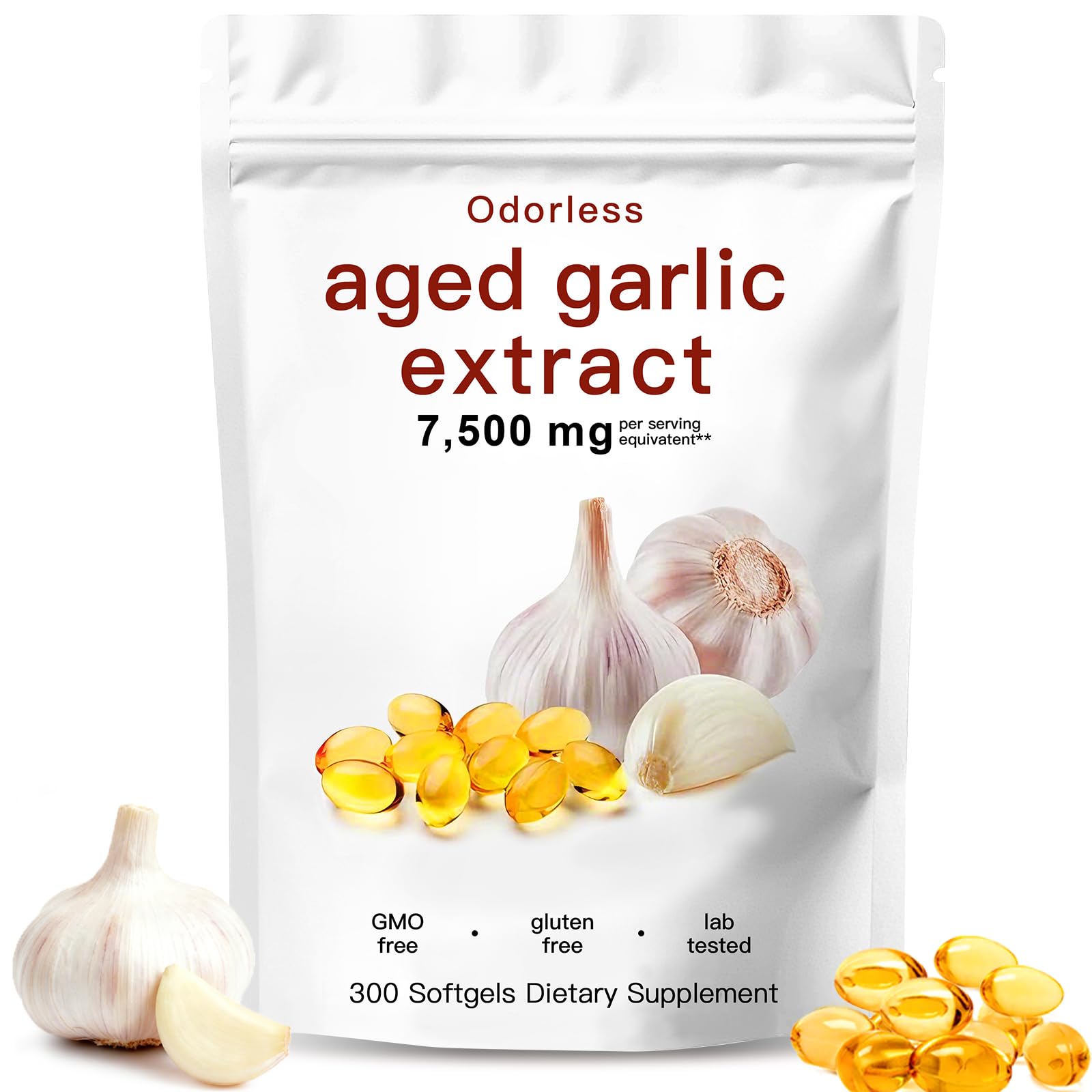 Aged Garlic Extract Our garlic undergoes a two-year natural maturation process to enhance stability, reduce odor, and improve absorption for maximum benefits. Storage Note In warm conditions, softgels may occasionally stick together—this is completely normal and does not affect quality. Simply shake the bottle gently before use. A convenient, shelf-stable way to enjoy the benefits of aged garlic in softgel form. 7500mg Equivalent per Softgel Each softgel delivers the potency of 7500mg of aged garlic bulb extract at a 15:1 concentration. Naturally matured for two years to enhance stability, nutrient retention, and absorption for smooth daily use and consistent antioxidant benefits. Antioxidant Wellness Immune Support Aged garlic is a rich source of natural antioxidants that help maintain a healthy cardiovascular system and overall immune balance. Our advanced extraction process retains key nutrients while minimizing allicin for a clean, odor-free formula. Odorless Gentle Formula Enjoy all the benefits of garlic without the strong smell or stomach irritation. These odorless garlic capsules are gentle on digestion and completely free from gluten, GMOs, soy, dairy, and tree nuts.