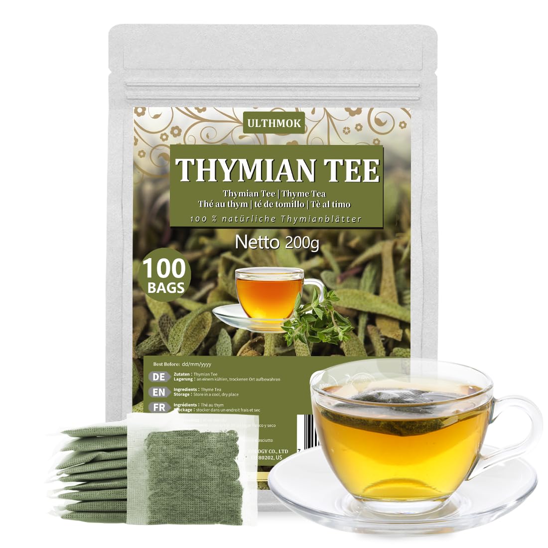 ULTHMOK Premium Thyme Leaf Tea in 100 Bags Made with 100% Pure Thyme Leaves Aids Digestion & Supports