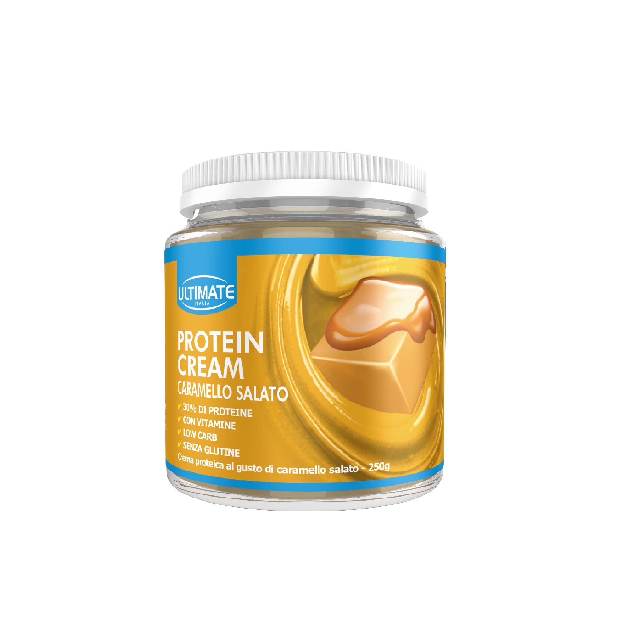 Protein cream with a salted caramel flavor, cashew nuts, almonds, and milk proteins low in sugar and enriched with vitamin E, which contributes to the protection of cells from oxidative stress, and vitamins B6 and B12, which contribute to normal energy-yielding metabolism. With sweetener. INGREDIENTS: Protein blend (micro- and ultra-filtered isolated and delattosed whey protein, isolated soy protein) peanut oil, polydextrose, sweetener: erythritol dried fruit (cashew nuts, almonds) (10 ) cocoa butter, coconut oil, emulsifier: cocoa lecithin. Rasol Flavorings, Himalayan pink salt, vitamin blend (D alfatocopherol acetate (vitamin E), pyridoxine HCl (vitamin B6), cyanocobalamin (vitamin B12)). May contain traces of other nuts and sesame seeds. Contains polyols: excessive consumption may produce laxative effects. SAFETY WARNING Contains polyols: excessive consumption may produce laxative effects. Store in a cool, dry place at room temperature. The possible appearance of oil on the surface is natural: stir before use. See moreUltimate Italia - Crème protéinée à 30 tartinable, sans sucre - 250g - goût caramel salé - peu de calories, sans gluten, avec des vitaminesDESCRIPTION DU PRODUIT DESCRIPTION DU PRODUIT Crème protéinée au goût de caramel salé avec noix de cajou et amandes et protéines de lait faible teneur en sucre et enrichie en vitamine E qui contribue à la protection des cellules contre le stress oxydatif et les vitamines B6 et B12 qui contribuent au métabolisme énergétique normal. Avec édulcorant INGRÉDIENTS : mélange de protéines (protéines de sérum de lait isolées et delattosées micro et ultra filtrées, protéines isolées de soia) huile d'arachhide, polydextrose, édulcorant : érythritol fruits secs (noix de cajou, amandes) (10 ) beurre de cacao, huile de noix de coco, émulsifiant : lécithine de cacao, émulsifiant : lécithine de cacao. Rasol Arômes, Sel rose de l'Himalaya, mélange de vitamines (D alfatocophérol acétate (vit E), pyridoxine HCl (vit B6), cyanocobalamine (vit B12)). Peut contenir des traces d'autres fruits à coque et graines de séessame. Contient des polyols : une consommation excessive peut avoir des effets lassativ AVERTISSEMENT DE SÉCURITÉ Contient des polyolles: une consommation excessive peut avoir des effets laxatifs. Conserver dans un endroit frais et sec et à température ambiante. L'éventuelle apparition de l'huile en surface est naturelle : mélanger avant utilisation Voir plus