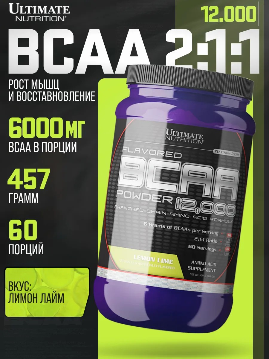| Комплектация | Ultimate BCAA 12000 Powder Flavored 457g; аминокислота BCAA 457гр |