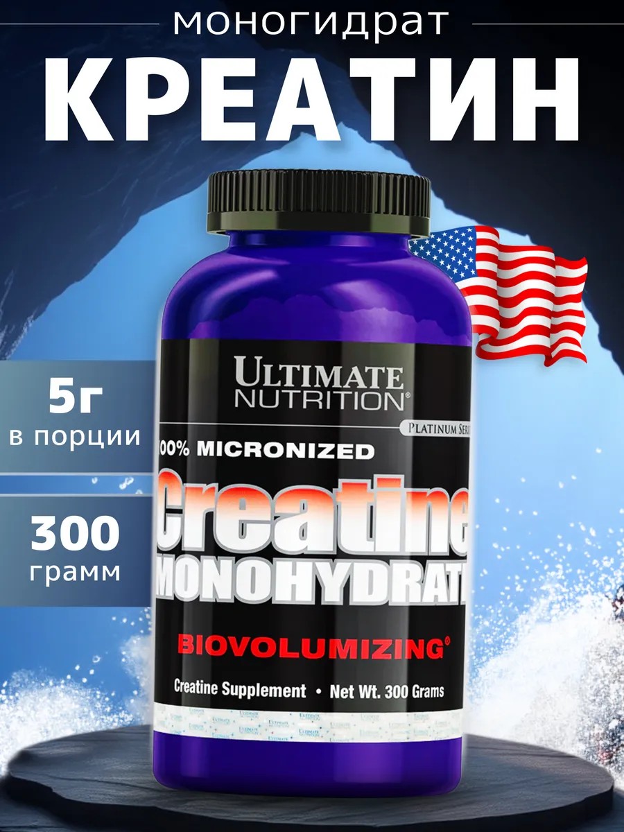 Креатин моногидрат Ultimate Nutrition 300 гр — это выбор многих спортсменов мирового класса, которые используют его для достижения пиковой работоспособности. Многочисленные научные исследования указывают, что креатин оказывает положительное влияние на физическую активность, время восстановления и выносливость спортсменов.
