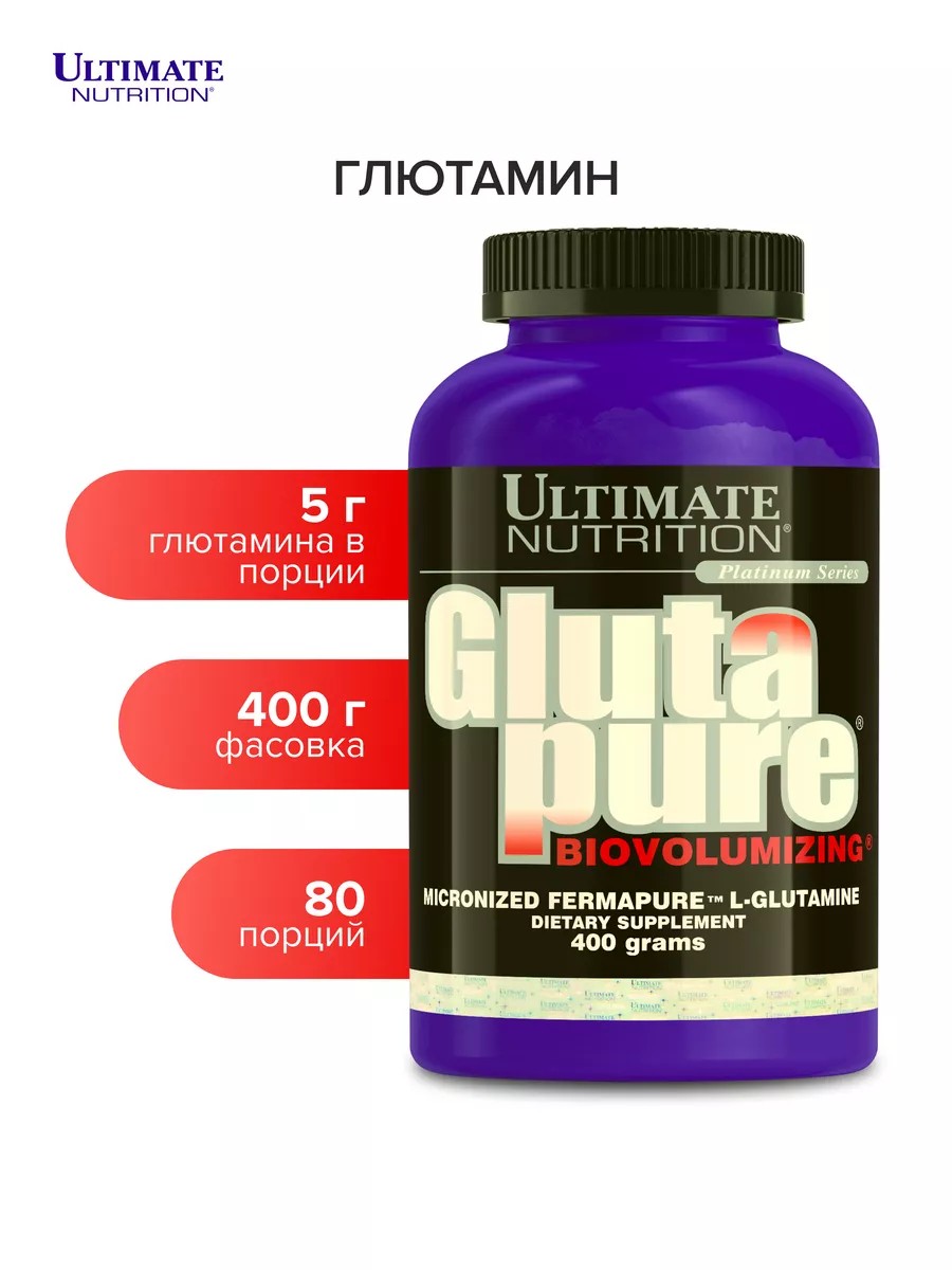 Аминокислота Глютамин Ultimate Nutrition Glutapure 400 г. Glutapure от Ultimate Nutrition представляет собой высококачественную аминокислоту глютамин, которая играет важную роль в организме, особенно в поддержке и развитии мышц. Во время интенсивных упражнений мышцы могут истощать свой уровень глютамина, что может ограничить синтез белка и замедлить процесс восстановления.Glutapure - простой и эффективный способ дополнить Ваш рацион необходимой аминокислотой. Его основные свойства включают помощь в удалении избытка аммиака, нормализацию пищеварения и улучшение работы мозга. Этот продукт также защищает слизистую оболочку желудочно-кишечного тракта, что особенно важно для людей, занимающихся спортом.Кроме того, Glutapure поддерживает форму спортсменам в условиях травм, операций и стресса. В таких ситуациях в кровь выделяется гормон кортизол, который способен снижать уровень глютамина, поэтому его дополнение становится особенно ценным.Всего одна столовая ложка порошка обеспечивает больше глютамина, чем 4 больших яйца, 100 граммов постной говядины или 100 граммов куриной грудки. Благодаря отсутствию ароматизаторов, вы можете легко размешать Glutapure в соке, протеиновом коктейле или гейнере, делая его удобным и вкусным дополнением к вашей диете.Glutapure содержит исключительно очищенный L-глютамин, обеспечивая максимальное качество и эффективность продукта. Придайте своим тренировкам новый импульс с помощью порошкового Glutapure от Ultimate Nutrition и достигните новых вершин в своих спортивных достижениях!Рекомендации по применению: добавьте 5г ( около одной чайной ложки) в 150 мл воды или фруктового сока. Принимайте по одной порции 2-3 раза в день на пустой желудок. В тренировочные дни принимайте одну порцию после тренировки.