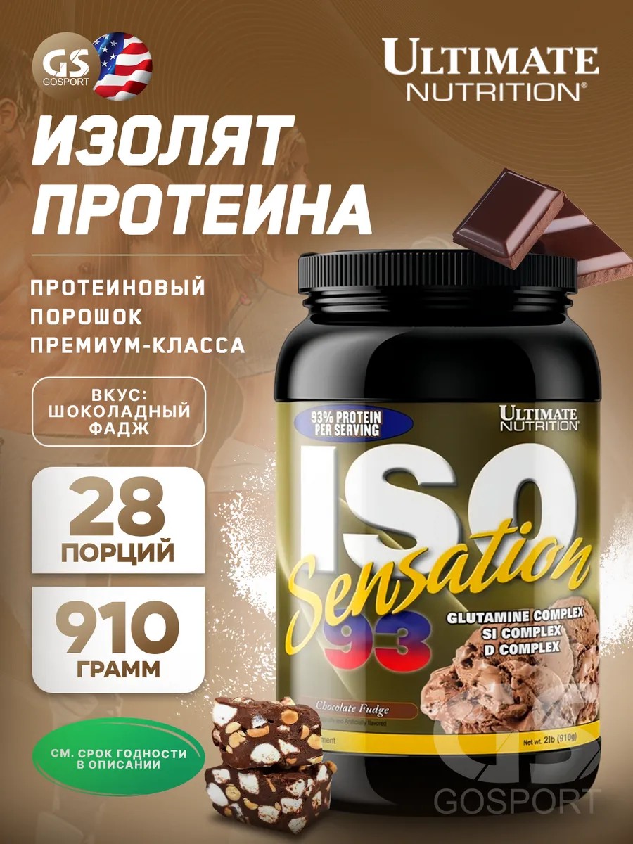 Expires until February 28, 2028. ISO Sensation Whey Protein Isolate 93, 910 g, Chocolate Fudge. Ultimate Nutrition proudly presents Iso Sensation, containing 100% IsoChill whey protein isolate. IsoChill is an isolate obtained through a microfiltration process at ultra-low temperatures, which guarantees a balanced content of undenatured bioactive whey proteins along with immunoglobulin, lactoferrin, and glycomacropeptides. Colostrum is also added to this product's unique formula. Colostrum is the first food we receive after birth. This substance, found in breast milk, supplies the body with all the necessary elements and regulates many biochemical processes. However, research shows that colostrum is beneficial not only for infants but also for adults. With age, our body produces fewer immune factors needed to fight disease and infection. Colostrum supplementation supports the production of these important factors. Iso Sensation also includes a glutamine complex. During periods of stress (including training), the body requires large amounts of glutamine. Under these conditions, glutamine supplementation can be extremely beneficial. L-glutamine has an anti-catabolic effect, preserving muscle tissue and maintaining nitrogen balance. We've added the most stable and easily absorbed glutamine to the formula. Peptide-linked glutamine, N-acetyl-L-glutamine, and Glutapure quickly enter muscle cells, converting to free glutamine and performing their important metabolic functions. Optimizing insulin metabolism promotes muscle growth. Our SI Complex includes alpha lipoic acid, di-pinitol, and 4-hydroxyisoleucine. These ingredients effectively improve insulin sensitivity, and the use of blood sugar by muscles leads to improved glycogen synthesis and, ultimately, muscle mass gain. Finally, D Complex is a blend of protease and lactase digestive enzymes for improved nutrient absorption, ensuring maximum absorption of the nutrients in our formula. Try Iso Sensation today and you won't be disappointed. This is an extremely convenient isolate, and it also has a great taste. Directions: Take 1 scoop (32 g) of Iso Sensation 93 and mix it with 200-250 ml of water or very low-fat milk. Depending on the duration and intensity of your workouts, as well as your own needs, you can adjust the dosage accordingly.