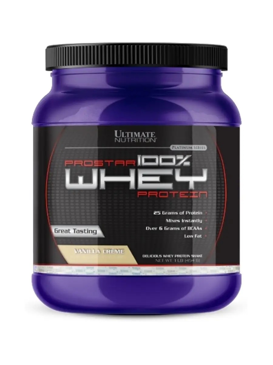 Prostar Whey from Ultimate Nutrition is a protein blend consisting of high-quality raw materials, including whey protein isolate and concentrate, as well as all the essential amino acids for athletes training both to gain mass and to reduce the percentage of subcutaneous fat. Key ingredients: 25 g of protein per serving, only 2 g of carbohydrates per serving, over 6 g of natural branched-chain BCAA amino acids per serving. Industry-leading mixability and taste! Suggested use: Adults, take 1 scoop once in the morning, during meals, after dissolving in a glass (200 ml) of water at room temperature. Duration of use: 1 month. Contraindications: individual intolerance to the product components, lactose deficiency, pregnancy and breastfeeding. It is recommended to consult a doctor before use. Storage conditions: Store in a dry place, out of the reach of children, at a temperature not exceeding 25 degrees. There is a packet with a moisture-retaining agent inside the product. Be careful!