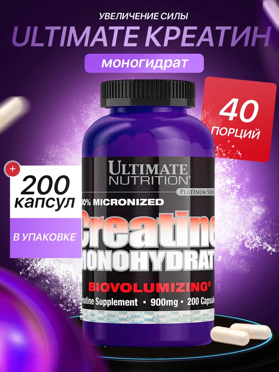 Ultimate Nutrition Creatine Monohydrate 900mg 200 caps is the most important sports nutrition supplement for strength and speed-strength sports.