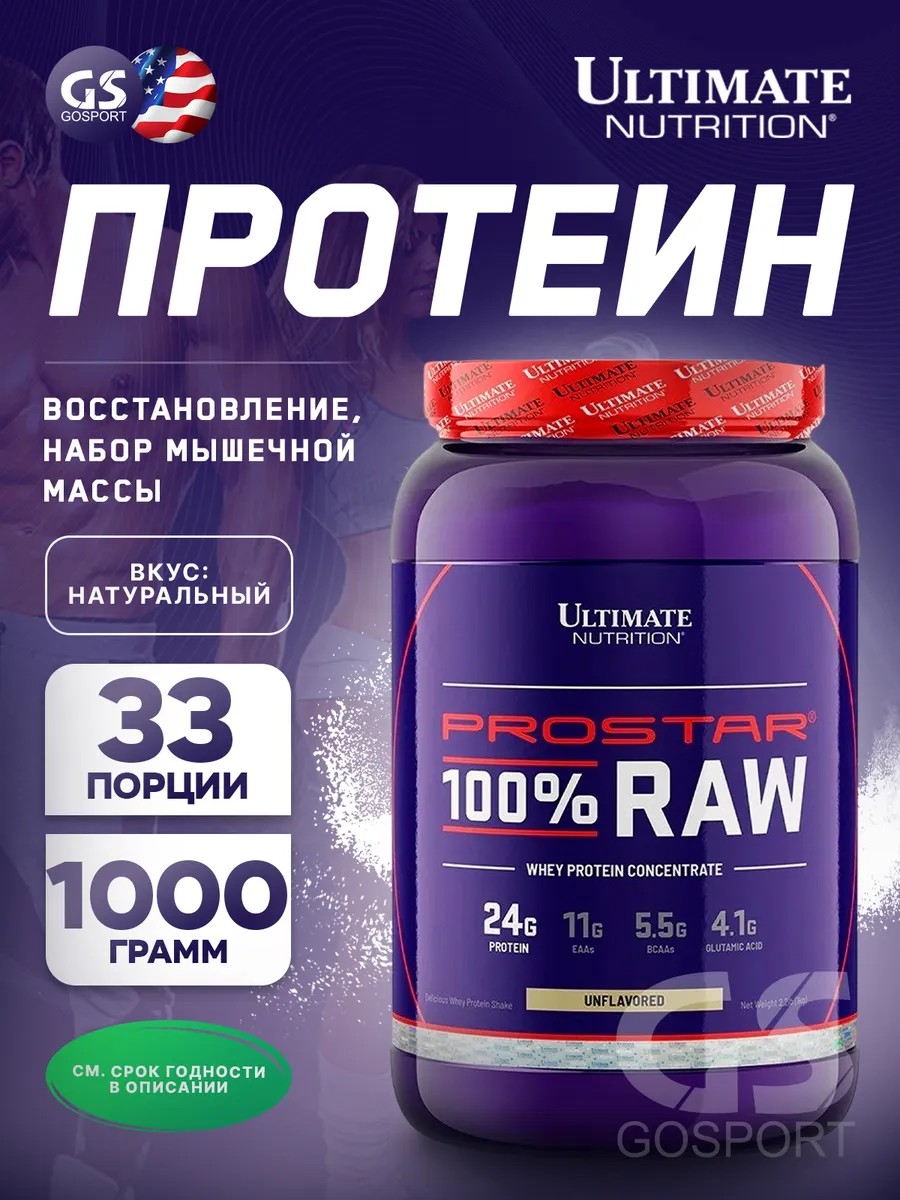 Expires until March 30, 2028. PROSTAR 100% RAW Whey Protein 1000 g, Natural. Prostar 100% Raw from Ultimate Nutrition is ideal for those looking for pure protein without sweeteners, artificial colors, flavors, or other flavor enhancers. It is intended for: Fitness and healthy lifestyle enthusiasts looking for a protein that will provide them with natural and neutral-tasting protein. For those whose diets are low in protein. For athletes working on increasing muscle mass. It has no flavor, making it ideal for preparing dietary meals. You can add it to your shakes, smoothies, savory and sweet pancakes, protein bars, and protein bread. It will provide you with a sufficient daily protein and nutrient intake, recovery, growth, and maintenance of muscle mass. The difference between Raw-Prostar and highly processed proteins is that Prostar is not heated above 48°C during production. Raw-Prostar has all the benefits of whey protein, with the added bonus of being closer to its original form. You'll notice that Prostar 100% Raw Whey doesn't completely reduce fat, but removing fat reduces the glutamine and cysteine content, so its advantage lies in its strong amino acid profile. Thus, Prostar 100% Raw Whey will provide you with better recovery and muscle growth thanks to its higher percentage of amino acids. Directions: Mix one 30g scoop with 250ml of water, juice, or your favorite beverage. If you like a thick shake, mix it with 200ml of your favorite beverage. It dissolves easily. Depending on your needs, take 1 to 3 times daily.