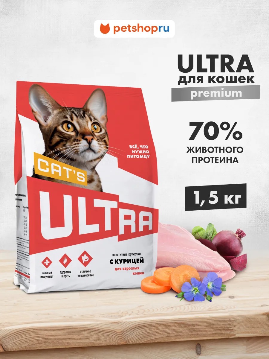 Ultra Сухой корм с курицей для взрослых кошек, 1,5кг