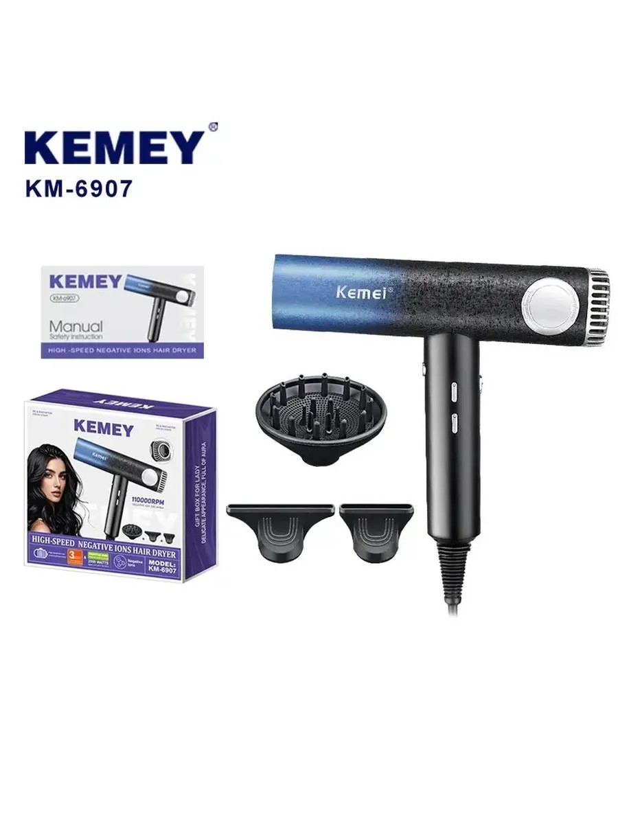 Discover a new level of hair care with this modern hair dryer, designed for professional and home use. Its compact and lightweight design ensures ease and comfort, allowing you to create stylish hairstyles effortlessly. A powerful motor ensures fast drying and styling, saving you time. Adjustable temperature and speed settings allow you to fine-tune the device to your needs, while overheat protection technology ensures safe operation. Its ergonomic shape and reliable mechanism make this hair dryer the ideal choice for those who value quality and comfort. Its modern design and functionality make it an indispensable assistant for creating a variety of hairstyles while maintaining healthy hair. Ideal for everyday use, it will help you achieve professional results at home or in the salon. Create voluminous styles, sleek updos, or curls—all are possible with this versatile tool. High-quality materials and modern technology ensure reliability and durability. Add a bold and expressive look to your look with this multi-functional hair dryer that combines efficiency, safety and style.
