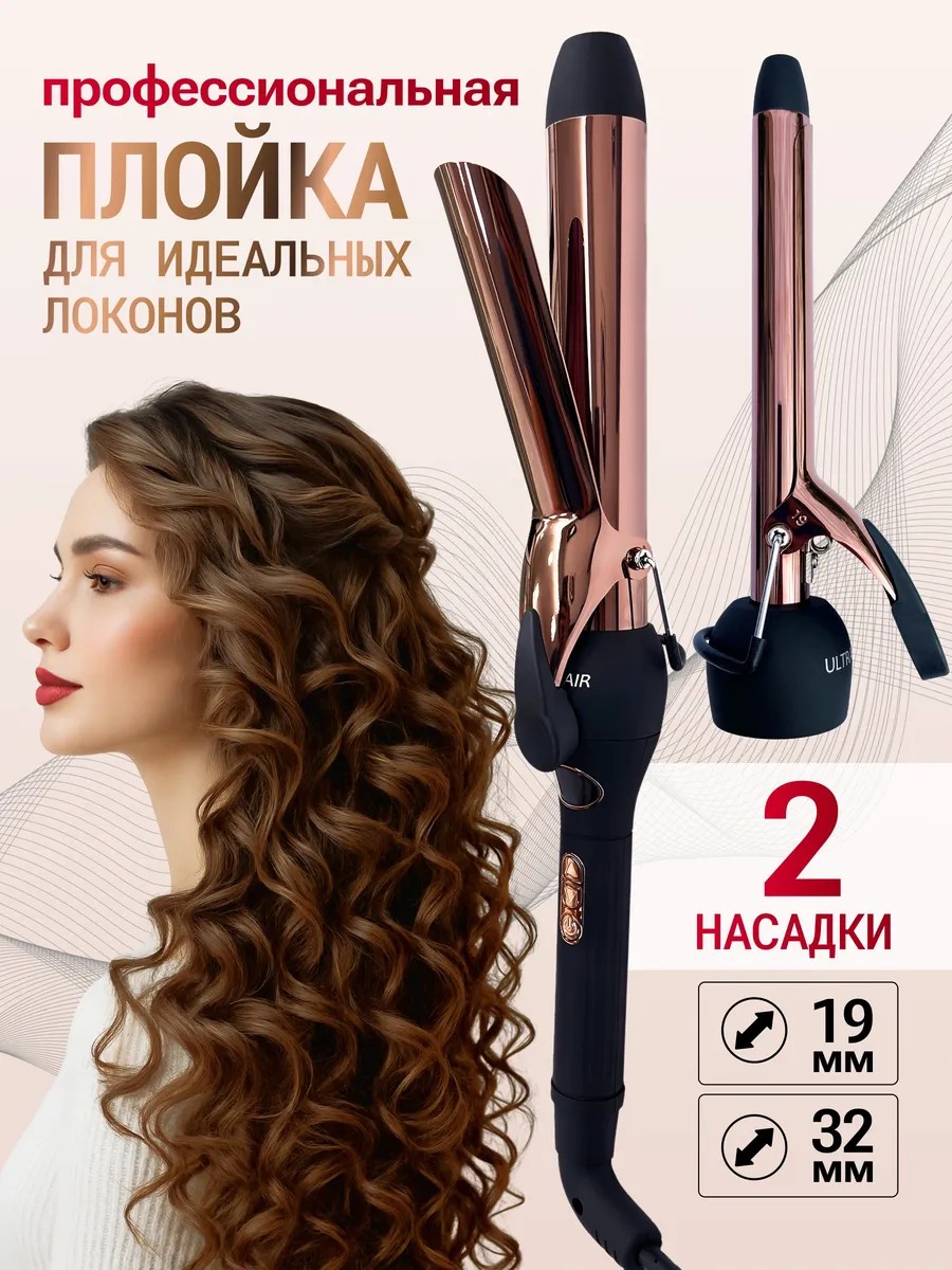 Ultrahair Плойка для локонов и завивки волос крупная профессиональная