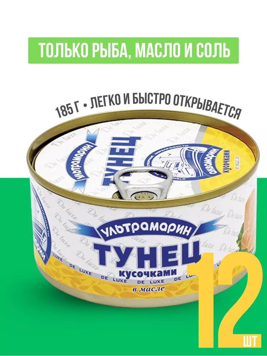 Ультрамарин Консервы рыбные тунец кусочками в масле 185 г, 12 шт