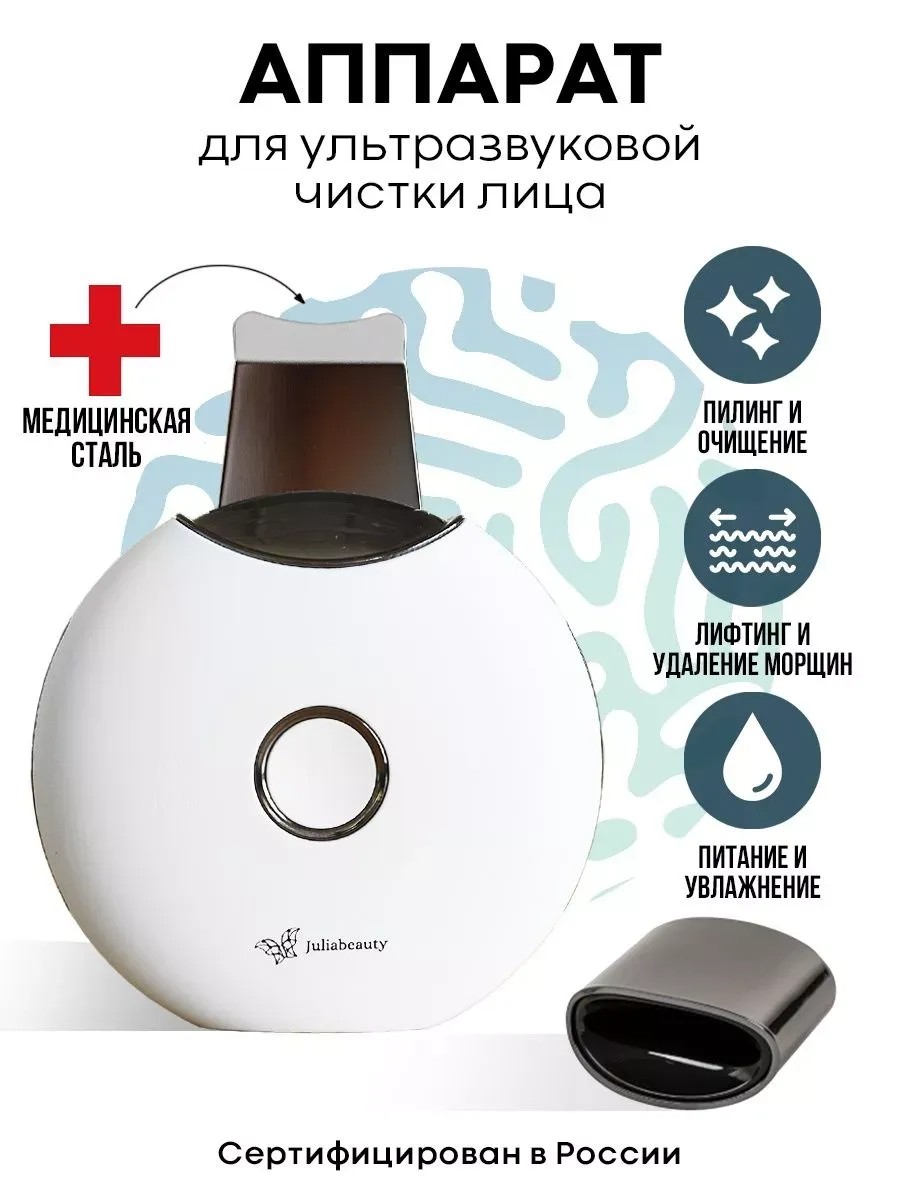 Ультразвуковой прибор для чистки лица Juliabeauty бережно очищает кожу, отшелушивает ороговевшие клетки, удаляет черные точки, омолаживая кожу. Профессиональные косметические процедуры отныне можно проводить самостоятельно, в домашних условиях. Ультразвуковой аппарат поможет самостоятельно ухаживать за своей кожей, делать такие уходовые процедуры как :глубокий пилинг, удаление черных точек, акне, комедонов, угрей,лифтинг процедуры. Профессиональная чистка лица ещё не была такой доступной. Ультразвуковой аппарат для чистки лица Juliabeauty бережно отшелушивает ороговевшие клетки, омолаживая кожу. очищает кожу. Прибор использует микротоки, ультразвуковые вибрации и положительные ионы для вытеснения загрязнений, комедонов и кожного сала глубоко из пор. Для избавления от высыпания - достаточно, регулярно пользоваться скрабером, при помощи ультрозвукового массажа кожа приобретет сияние гладкость и эластичность. Для поддержания свежести и молодости кожи., ультразвуковой массаж следует делать раз в неделю.