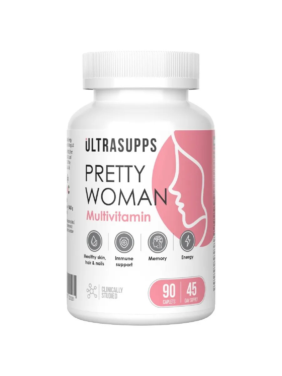 Компания Ultrasupps разработала специальный мультивитаминный комплекс для женщин под названием Pretty Woman Multivitamin Formula. Продукт содержит более 50 важных для здоровья и красоты женщин компонентов и обеспечивает баланс витаминов и микроэлементов, которые помогут справиться со стрессом, а также наполнят жизненной энергией. Он идеально подходит для женщин, проживающих в больших городах, нуждающихся в дополнительных витаминах и минералах для поддержания энергии, нормализации обмена веществ, укрепления иммунитета, сохранения женского здоровья и красоты. Прием комплекса способствует улучшению общего самочувствия, настроения, качества сна и дает ощущение бодрости в течение дня. Продукт доступен в двух фасовках - 60 и 90 каплет. Не является лекарственным средством. АКТИВНЫЕ КОМПОНЕНТЫ витамины A, C, D3, E, K1, B1, B2, B3 (ниацин), B5, B6, B7 (биотин), B9 (фолиевая кислота), B12 - способствуют общему укреплению организма женщины и предотвращает дефицит витаминов микроэлементы цинк, магний, кальций, йод, хром, железо, кремний и другие - укрепляют иммунную систему, поддерживают нервную систему, улучшают память, внимание, состояние кожи и волос экстракты фруктов, ягод и овощей - замедляют процессы старения и уменьшают желание употреблять сладости гиалуроновая кислота и коллаген - помогают уменьшить износ суставов и связок, а также способствуют уменьшению мелких морщин, восстанавливают упругость и увлажненность кожиТаблетки массой 1650мг. +- 5% от 10 до 1000 штук в банках, или в блистерах, или во флаконах или в саше пакетах для реализации населению. Продолжительность ежедневного приема -1 месяц.