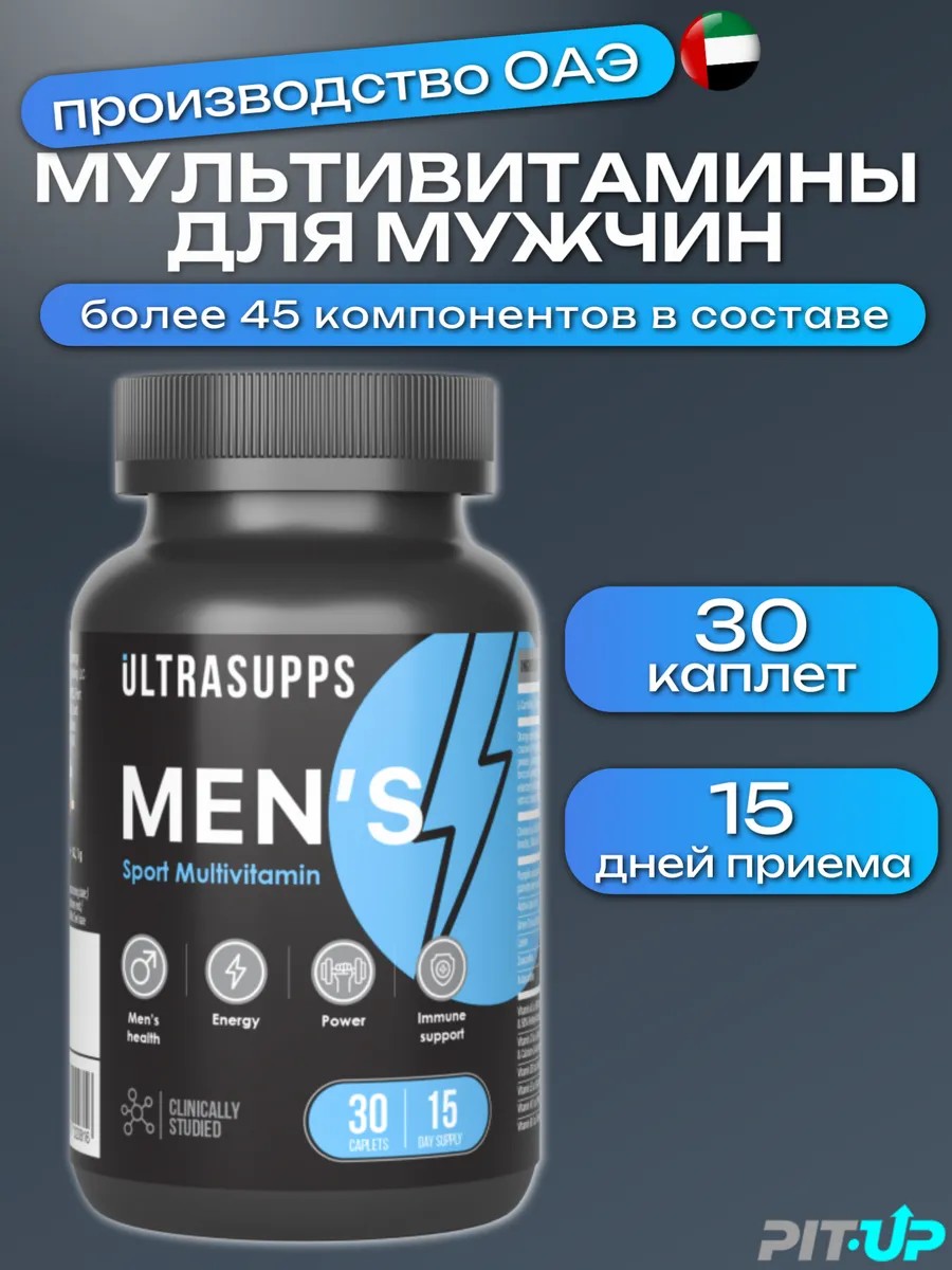| Комплектация | Ultrasupps MEN`S Sport Multivitamin 30 каплет в оригинальной упаковке |