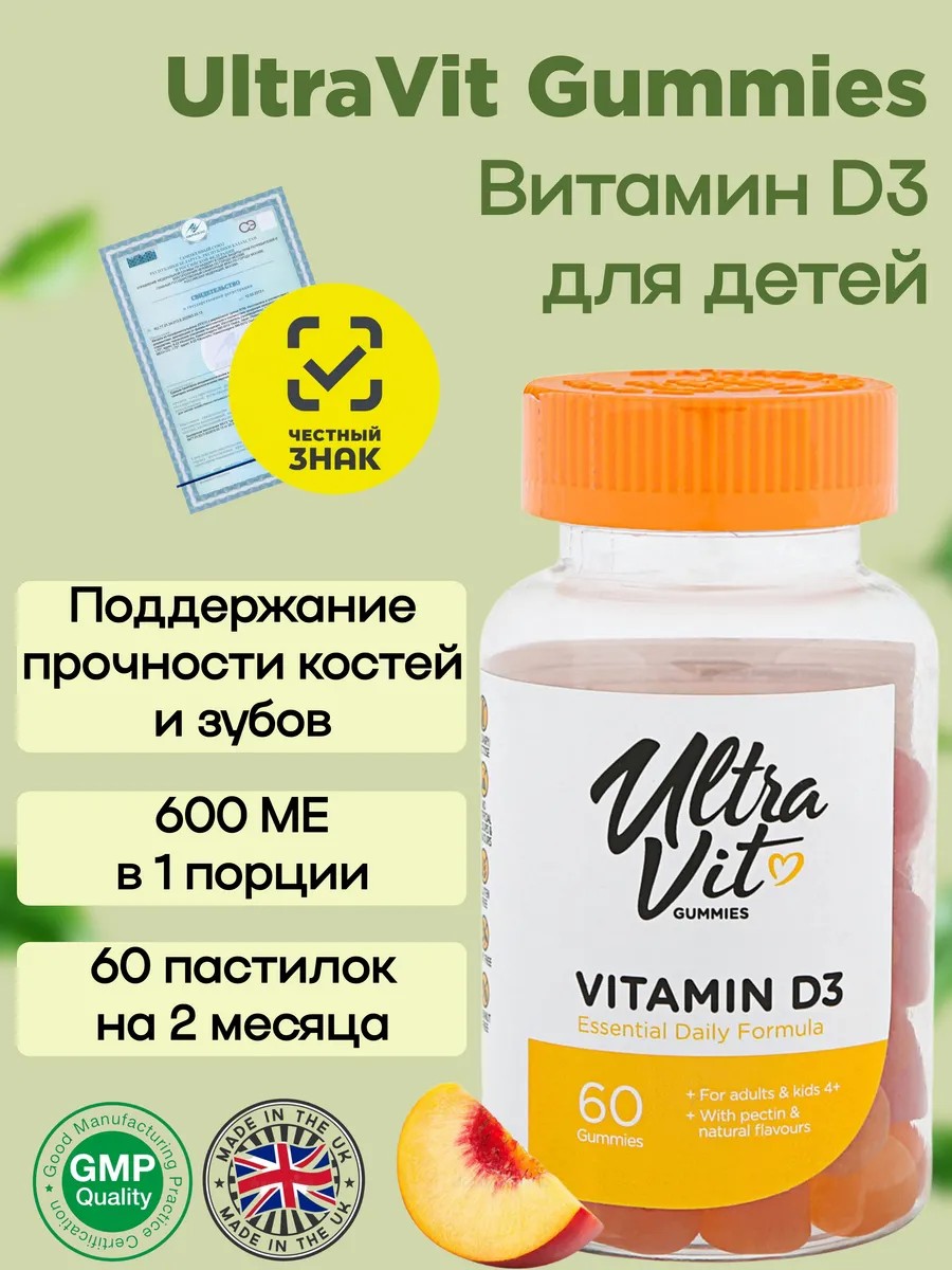 Витамин Д3 (600 МЕ в одной пастилке) от Ultravit – вкусные жевательные пастилки, высокая концентрация витамина и удобная форма для ежедневного применения.