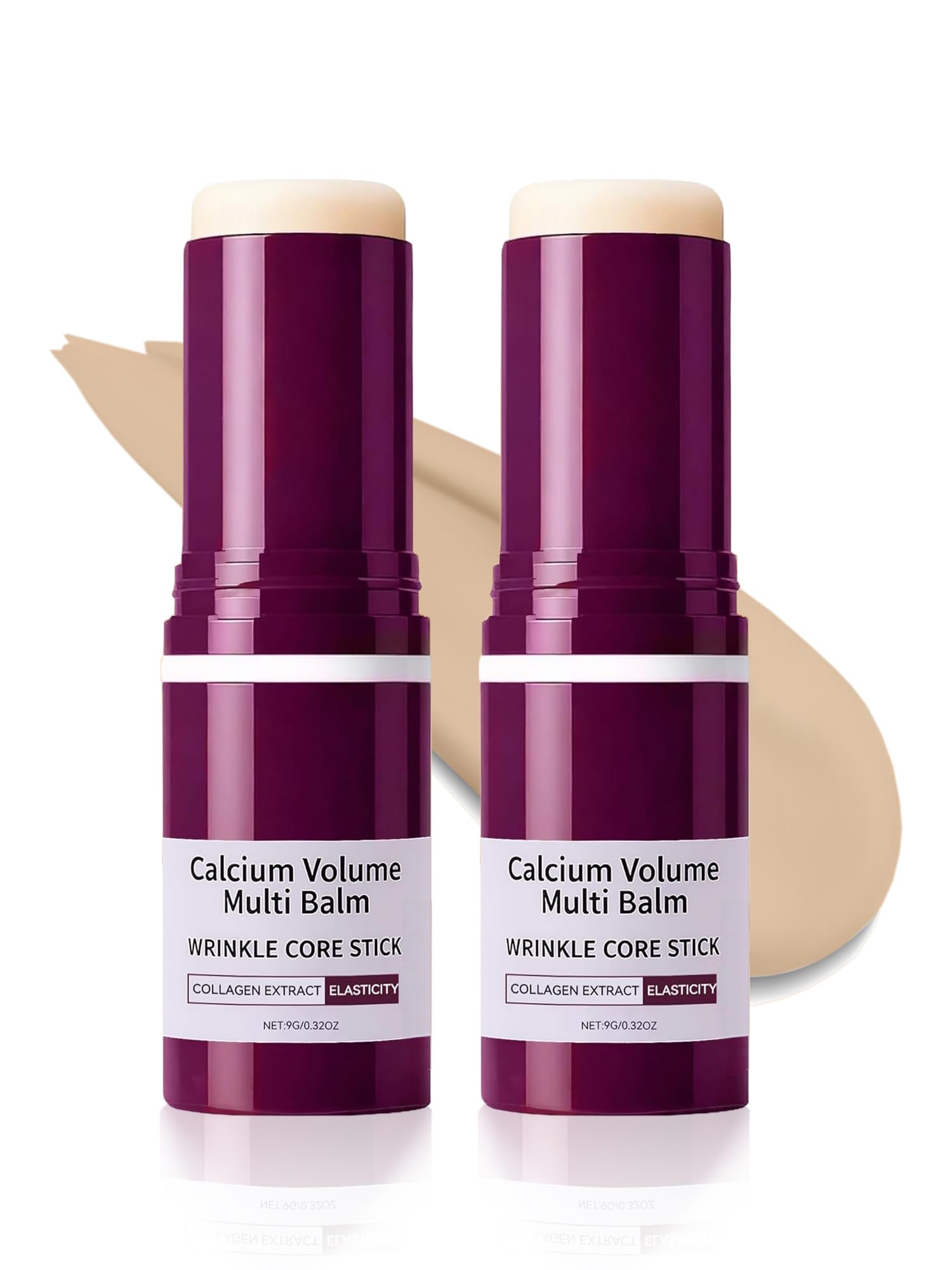 Umiup Calcium Multi Balm Stick Calcium Volume Multi Balm Korean Collagen Moisturing Stick Anti Wrinkle Stick Anti-aging Hydrating Firming Skin Almond Suitable for Eyes Neck Face (2PCS)