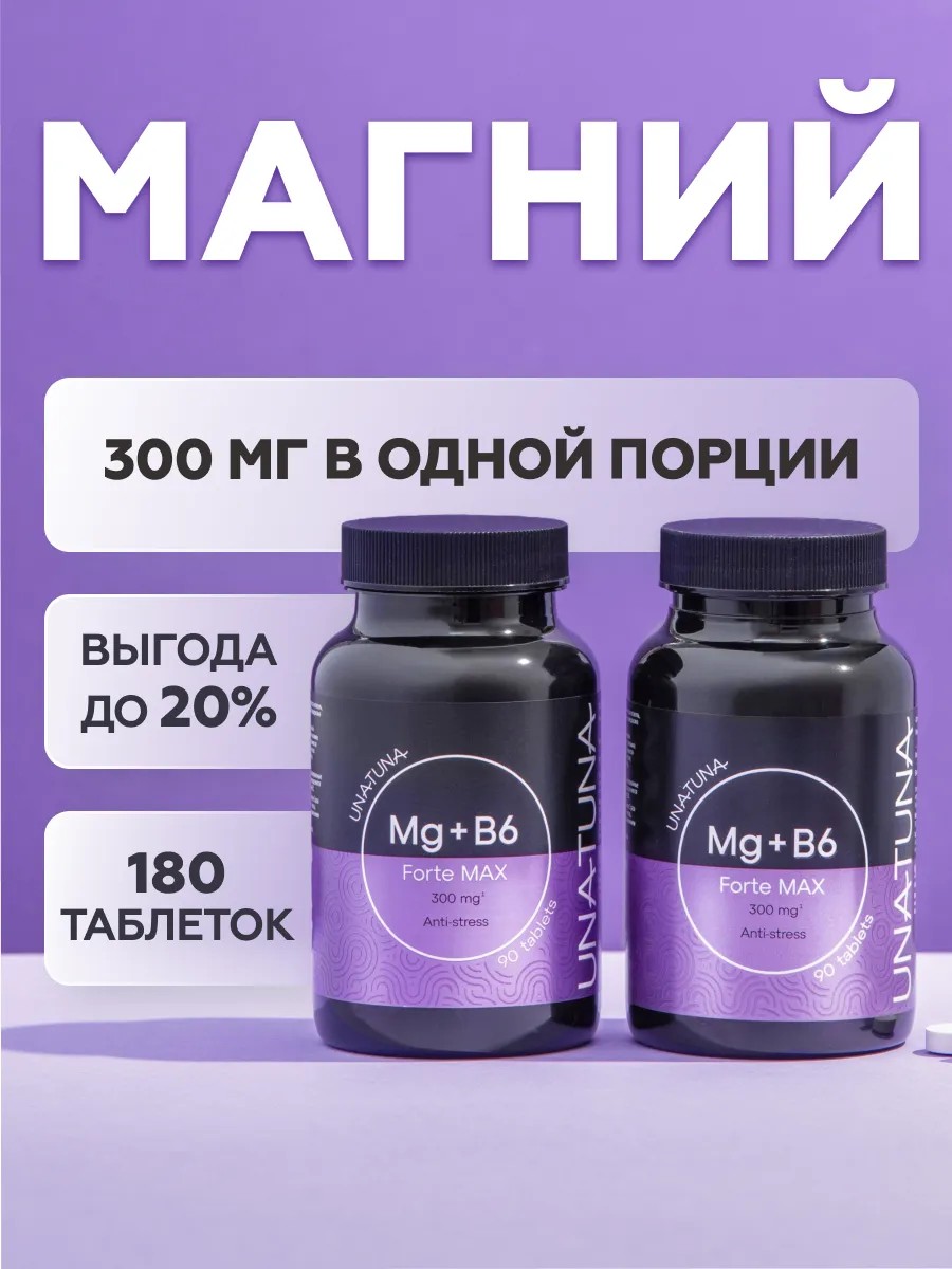 Магний B6 от Una Tuna - витаминный комплекс для поддержки нервной системы. Эффективная и безопасная формула для достижения быстрого результата. Цитрат магния - максимально биодоступная форма магния. Комбинация с витамином B6 также помогает магнию усваиваться. Содержит 300 мг магния в суточной дозировке. Mg с витамином b6 укрепляет нервную систему, снижает стресс и тревожность, способствует расслаблению, оптимизирует работу сердечно-сосудистой системы. UnaTuna витамины магний б6 форте улучшают качество сна, выводят токсины из организма, устраняют мигрени, апатию, депресию. БАД от Уна Туна соответствует европейским стандартам качества. В составе добавок нет ГМО, сои, глютена и лактозы. Высочайшую степень очистки сырья и контроль качества на всех этапах производства подтверждает исертификат безопасности международной классификации ISO 22000. Общие рекомендации по приему: взрослым принимать по 1 таблетке 3 раза в день во время еды. Продолжительность приема –1 месяц. При необходимости прием можно повторить. Дополнительное : Витамины женские и мужские для взрослых играют важную роль в нашем организме. Один из важных элементов, который входит в состав витаминно-минерального комплекса, - это магний. Магний является антистрессовым минеральным веществом, которое помогает улучшить работу многих систем организма.