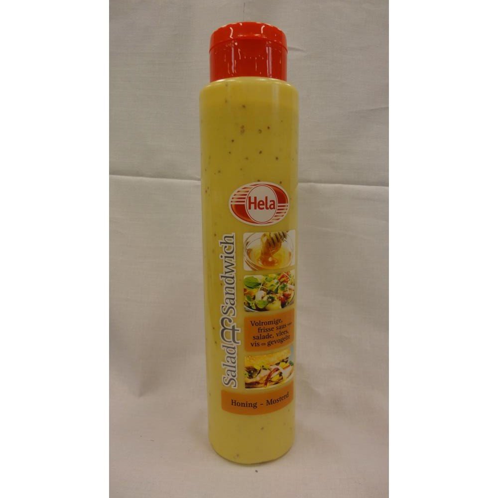 Hela Salad Sandwich Dressing Honey – Mustard 800ml Bottle (Honey Mustard Vinaigrette). INGREDIENTS Water, sugar, spirit vinegar, rapeseed oil, mustard seeds (5.01 ), honey (2.78 ), vinegar, modified corn starch, salt, food acids (lactic acid, citric acid), herbs and spices, preservative (potassium sorbate), modified potato starch, thickener (xanthan gum), stabilizer (disodium calcium EDTA).