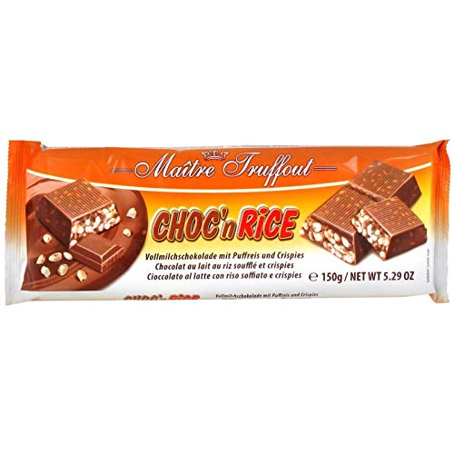 Ingredients: whole MILK chocolate 83 (sugar, skimmed MILK powder, cocoa butter, cocoa mass, sweet WHEY powder, emulsifiers: E322 (SOYA), E476 natural flavoring), puffed RICE 15 , extruded WHEAT and RICE 2 (RICE flour, whole WHEAT flour, WHEAT flour, RYE flour, sugar, skimmed MILK powder, table salt). INGREDIENTS Ingredients: whole MILK chocolate 83 (sugar, skimmed MILK powder, cocoa butter, cocoa mass, sweet WHEY powder, emulsifiers: E322 (SOYA), E476 natural flavoring), puffed RICE 15 , extruded WHEAT and RICE 2 (RICE flour, whole WHEAT flour, WHEAT flour, RYE flour, sugar, skimmed MILK powder, table salt).Choc' N Rice Milk Chocolate with Puffed Rice and Crispies 150g. Biscuits. Cookies, Pastries. Sweet Groceries. Ingrédients: chocolat au LAIT entier 83 (sucre, poudre de LAIT écrémé, beurre de cacao, pâte de cacao, poudre de LACTOSERUM doux, émulsifiants: E322 (SOJA), E476 arôme naturel), RIZ soufflé 15 , BLE et RIZ extrudés 2 (farine de RIZ, farine de BLE complète, farine de BLE, farine de SEIGLE, sucre, poudre de LAIT écrémé, sel de table). INGRÉDIENTS Ingrédients: chocolat au LAIT entier 83 (sucre, poudre de LAIT écrémé, beurre de cacao, pâte de cacao, poudre de LACTOSERUM doux, émulsifiants: E322 (SOJA), E476 arôme naturel), RIZ soufflé 15 , BLE et RIZ extrudés 2 (farine de RIZ, farine de BLE complète, farine de BLE, farine de SEIGLE, sucre, poudre de LAIT écrémé, sel de table).Choc' N Rice Chocolat Au Lait Au Riz Souffle Et Crispies 150G. Biscuits Secs. Biscuits, Pâtisserie. Epicerie Sucrée.