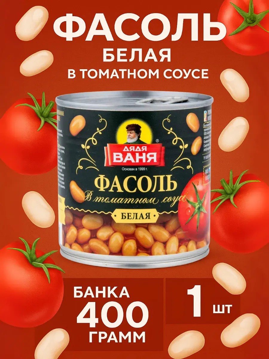 Дядя Ваня Фасоль белая консервированная в томатном соусе, банка 400 г