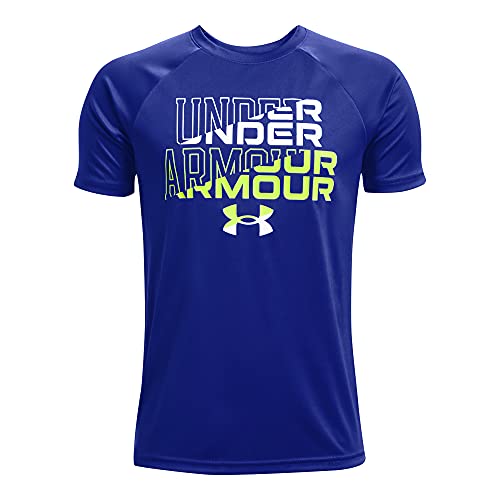 Under Armour Boys' Tech Wordmark Symbol Short-Sleeve T-Shirt Royal (400)/Cruise Blue Medium