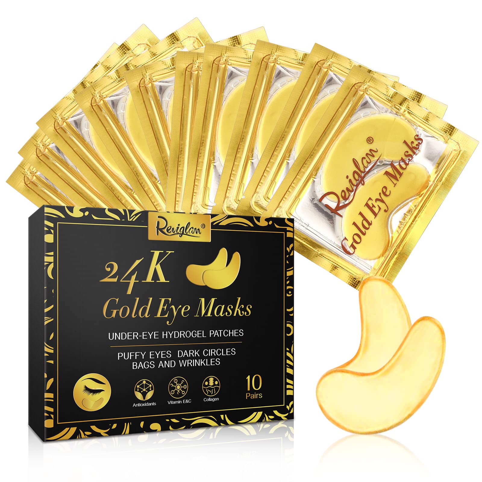Under Eye 24K Gold Masks Eye Masks for Dark Circles Anti Wrinkle Puffy Eyes Eye Bags (10 Pairs)