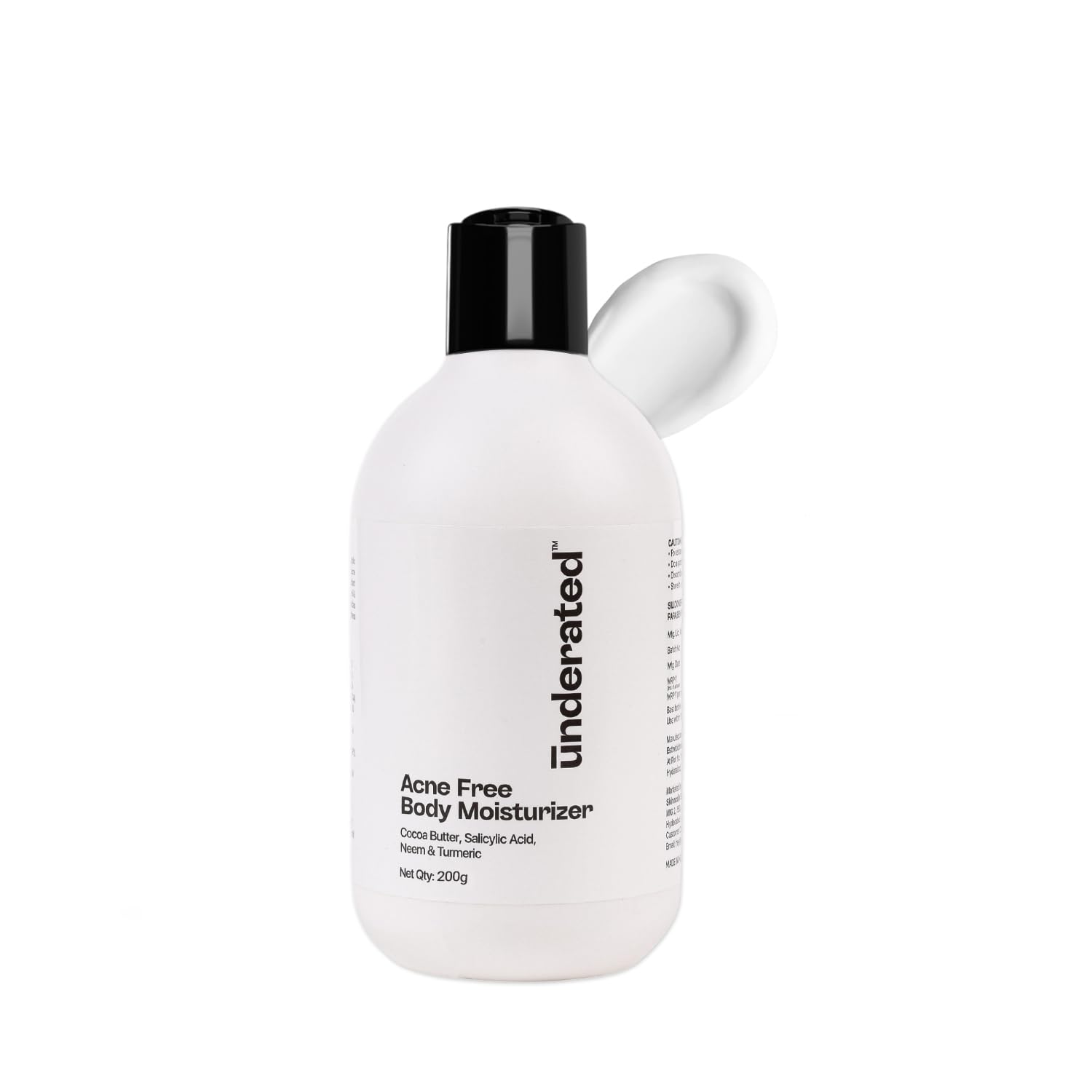 Experience deep nourishment and skin clarity with the Underated Acne Free Body Moisturizer, thoughtfully formulated with the goodness of Cocoa Butter, Neem, and Turmeric. This lightweight yet hydrating formula helps to soothe dull, dry, and tired-looking skin while promoting a balanced, refreshed appearance. Cocoa Butter deeply moisturizes and softens, leaving skin smooth and supple. Neem, known for its purifying properties, helps to reduce excess oil and keep skin feeling fresh, while Turmeric works to brighten and even out skin tone with regular use. This body moisturizer absorbs quickly into the skin without leaving a greasy residue, making it ideal for daily use. Whether you have acne-prone skin or simply need a hydrating solution that feels clean and non-sticky, this formula delivers comfort and care. Perfect for all skin types, it supports a clear, healthy-looking glow while helping to maintain natural moisture balance. Use it daily after showering or whenever your skin needs a boost of hydration. Feel confident in your skin—soft, smooth, and naturally radiant. Free from harsh chemicals, this body moisturizer is a gentle, everyday essential for clearer-looking, well-nourished skin from head to toe.