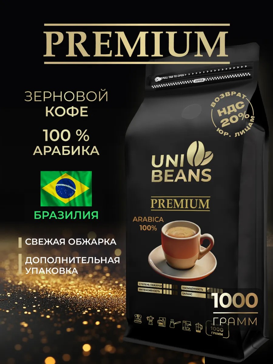 UNIBEANS Кофе в зернах 1 кг Арабика 100% PREMIUM