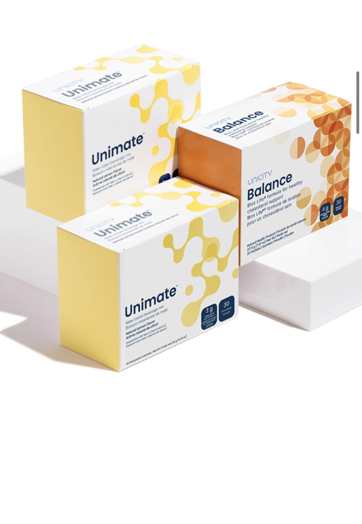 PACK DESCRIPTION Unicity Balance and Unimate; two products designed to bridge the gap between where you are and where you want to be. RECOMMENDED USE Unimate and Balance work together to help you feel great. See the detailed recommendations below for each product. CONTENTS Balance Natural Orange serving size: 1 packet (2 per day) Unimate Natural Lemon serving size: 1 packet (2 per day)