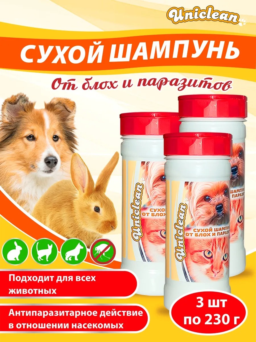 Сухой шампунь от блох, клещей, власоедов и паращзитов предназначен для сухого мытья собак, кошек и других домашних животных с целью уничтожения блох, паразитов и насекомых, когда нежелательно смачивать тело и шерсть животного водой. Сухой шампунь идеален в холодное время года или если по каким-либо причинам вы не можете животное искупать, например, при травмах и операциях. Также, он особенно удобен для котят, щенков, кроликов и просто незаменим, если ваше животное не выносит воды.