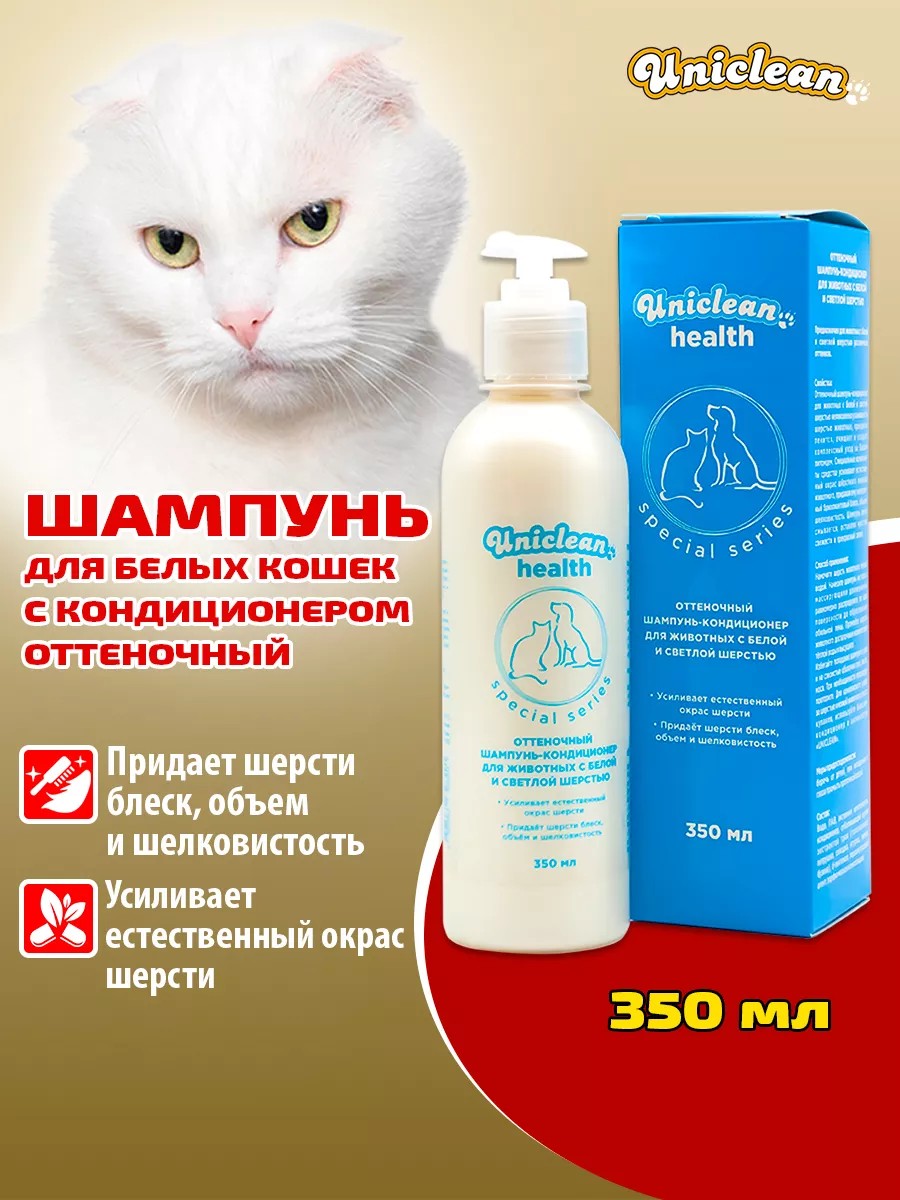 Оттеночный шампунь-кондиционер специальной серии Uniclean health для животный с белой и светлой шерстью 350 мл