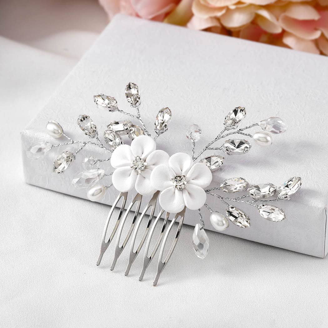 Unicra Bride Wedding Hair Comb Silver Flower Headpiece Crystal Bridal Hair Accessories for Women and Girls