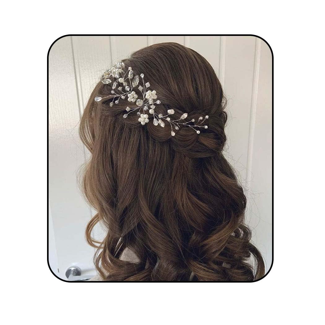 Attention: Size may be 2cm/1 inch inaccuracy due to hand measure; Color may be little different due to monitor, thanks for your understanding!please contact with us if you had any quality problem;We look forward to sharing your beautiful photos at weddings and parties. Crystal headband headpiece Suitable for bride, bridesmaid or flower girls,It's a short hair vine, it's simple but elegant. The product does a good job of grooming your hairstyle, it won't take up too much of your head because the product is too big, it is absolutely perfect.Handmade Bridal Hair Piece with crystal for wedding, party and evening;. The wedding hair piece silver is a perfect gift and you will be very satisfied when you receive it.Fashion design custom wedding hair accessories will decorate you elegant and beautiful; Wish you are the most beautiful bride when you wore it;Worth buying!. Silver hair vine size is shown in the picture; Color: Silver; If you want gold or rose gold, please contact me in advance .This short headband can be fixed to the hairstyle well. The advantage of the hair vine is that it can bend the product well, making it fit the hair well. Bride hair accessories materials: Alloy,Pearls and Crystal.100% handmade princess hair vine will decorate you elegant;.