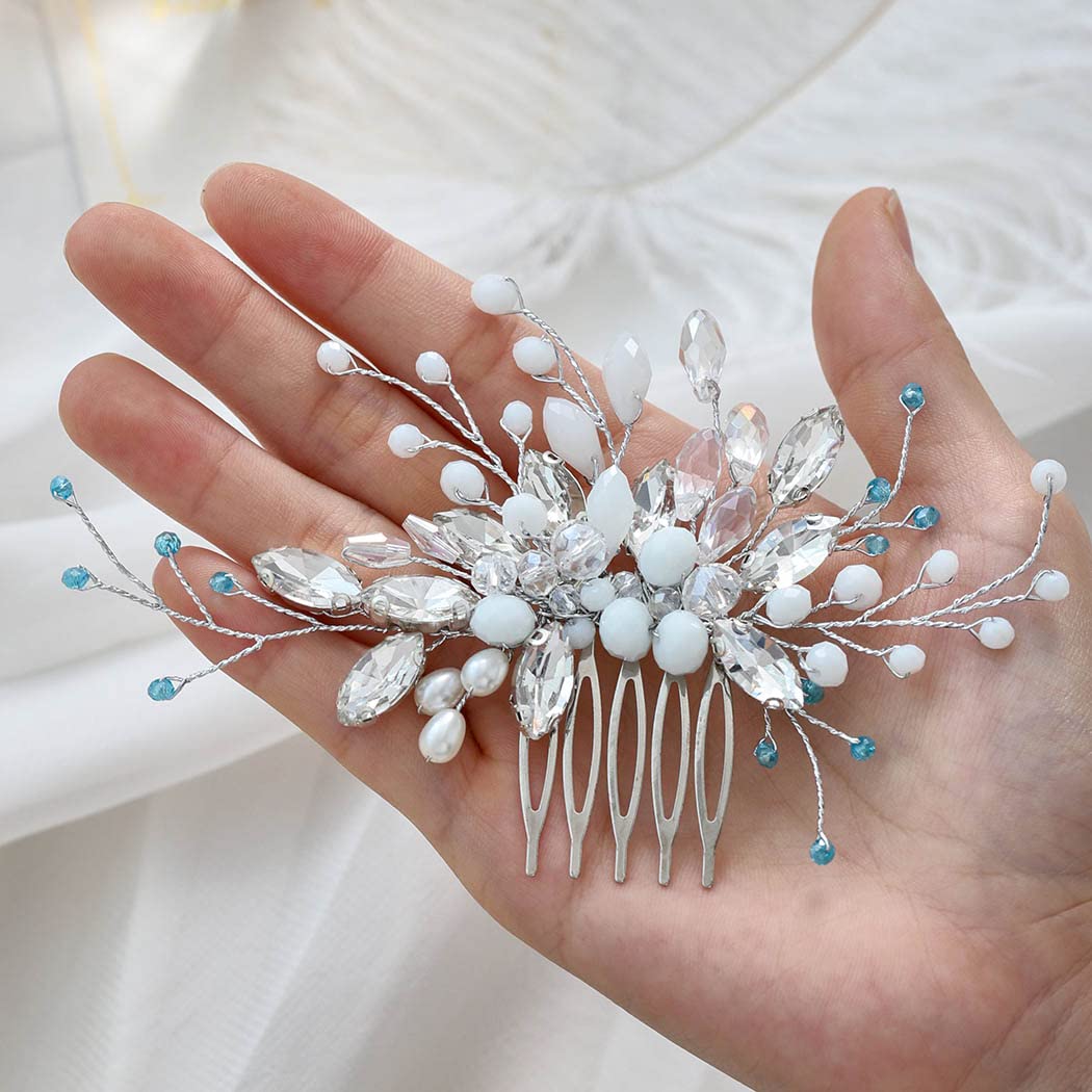 Unicra Crystal Bride Wedding Hair Comb Siver Bridal Hair Accessories Rhinestone Headpiece for Women and Girls