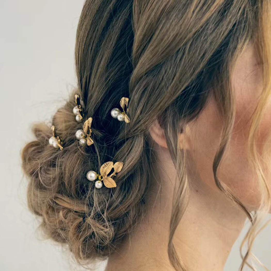 Unicra Wedding Gold Hair Pins Leaf Hairpins Hair Set Pearl Jewelry Decorative Bridal Pearl Hair Accessories Pack of 5