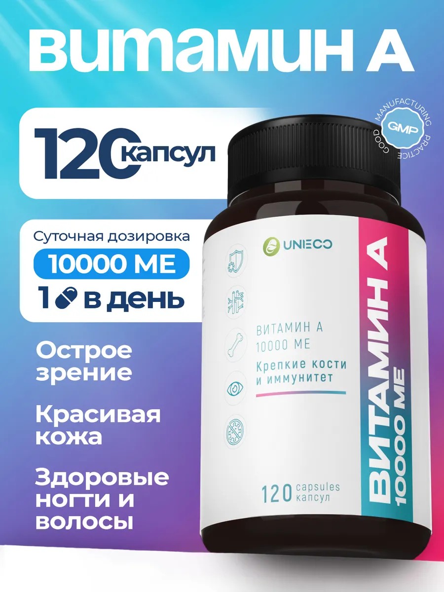 UNIECO Витамин А 10000 МЕ для кожи и зрения 120 капсул