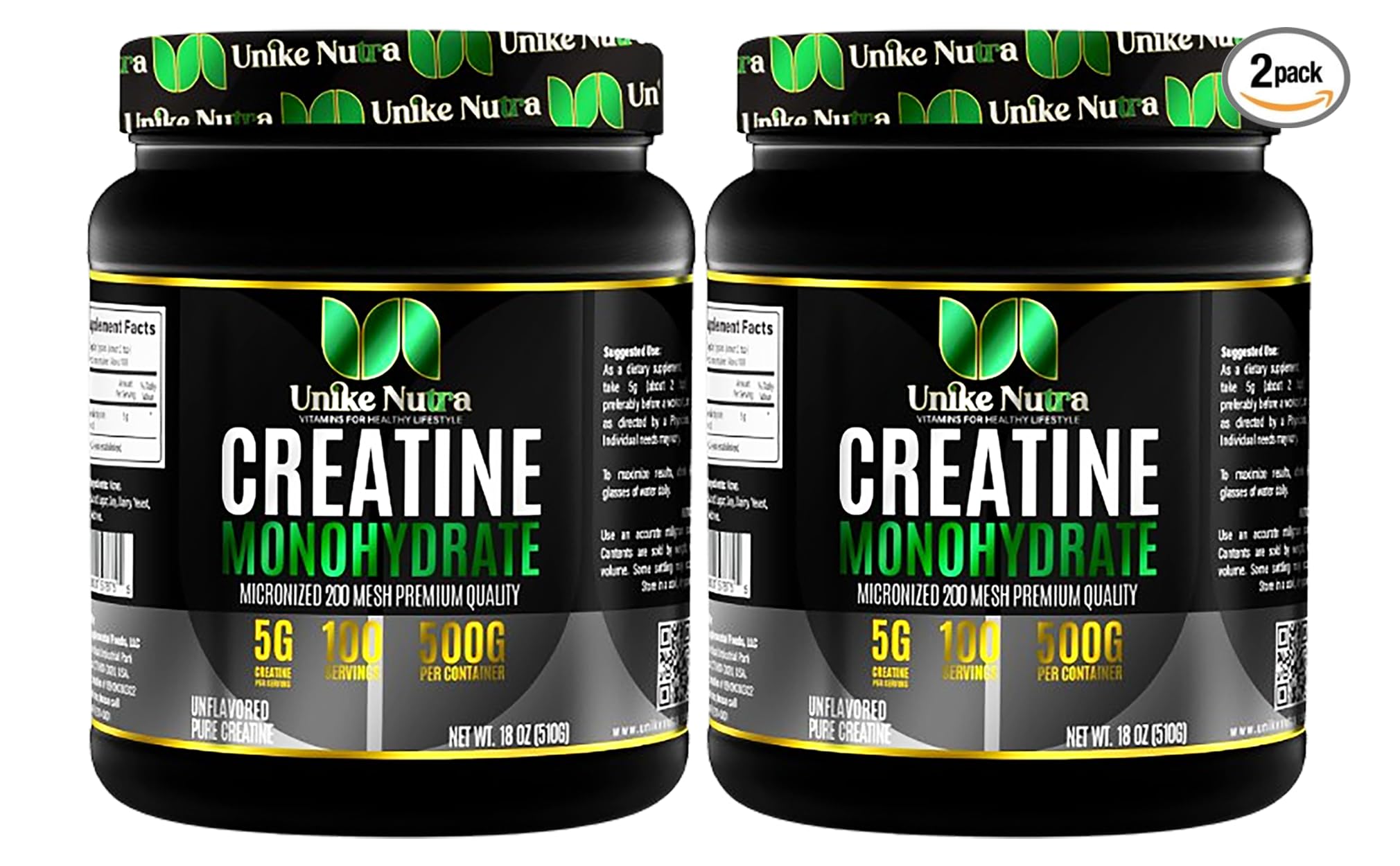 Unike Nutra Micronized Creatine Monohydrate Powder - Halal Kosher Vegan, Keto-Friendly - 10000mg. 2.2 Pounds. Per Serv (5g) - 200 Servings - Unflavored (Pack of 2)