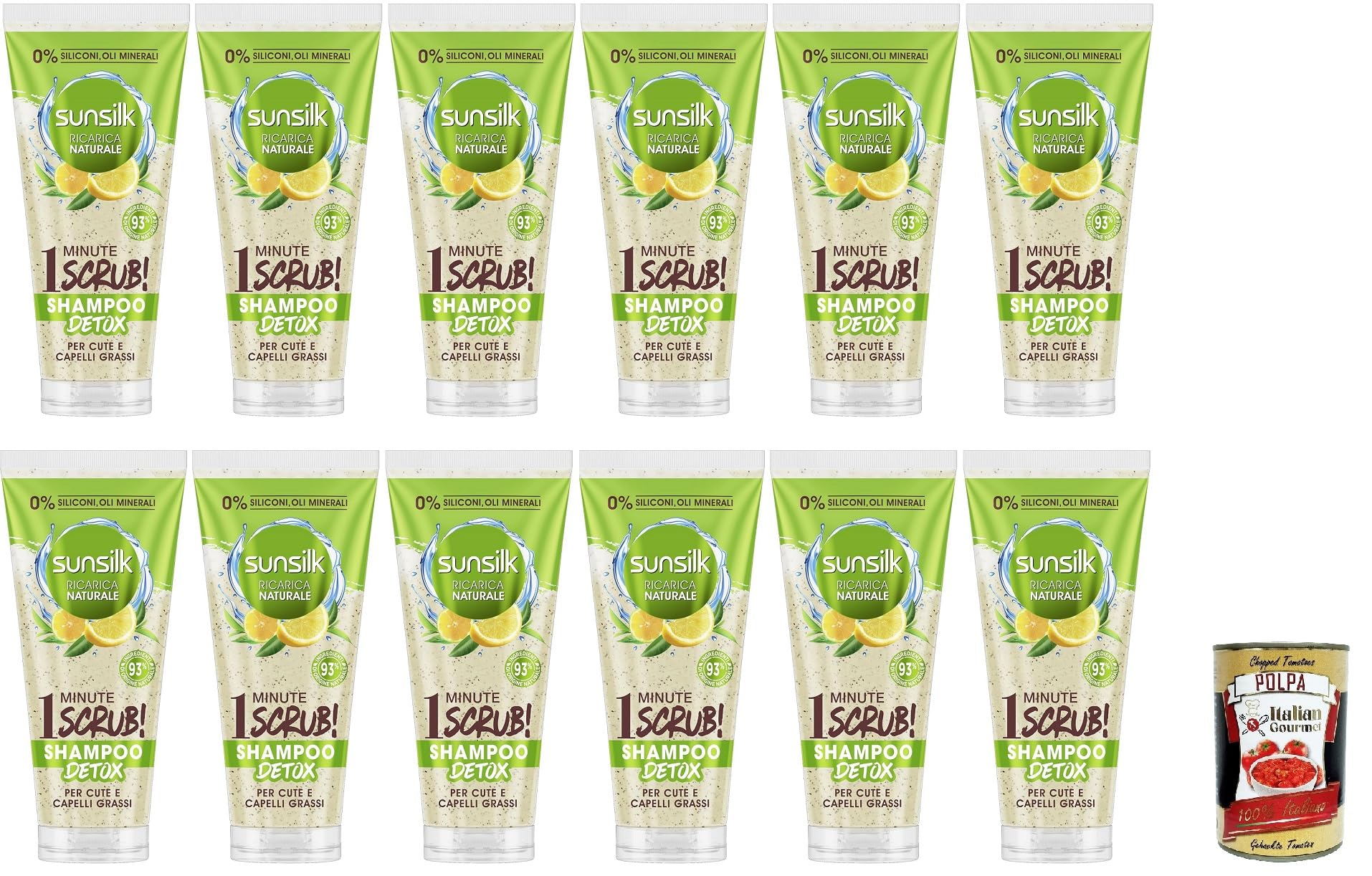 Unilever 12 x Sunsilk detox shampoo hair scrub with green tea and lemon shampoo peeling for scalp and oily hair + Italian Gourmet Polpa 400 g