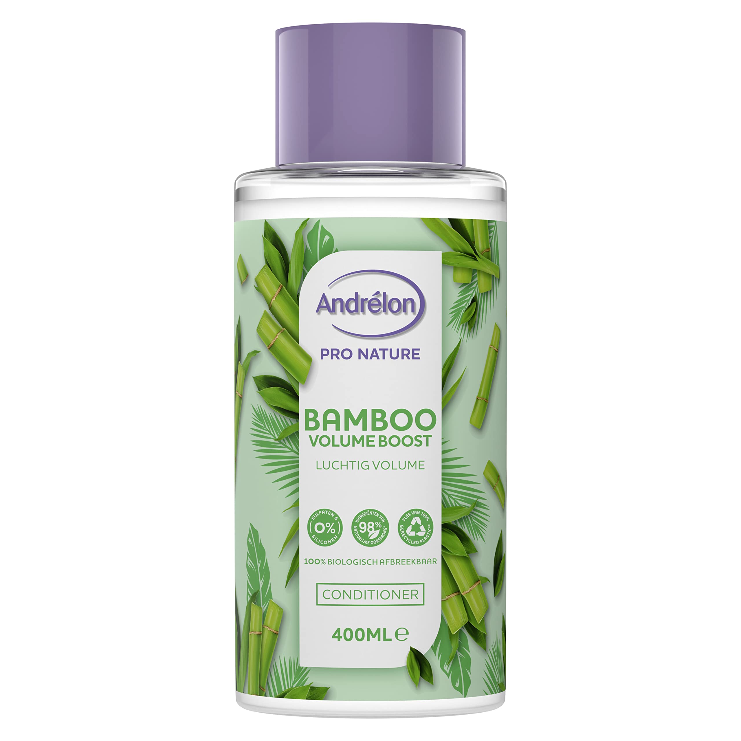 The benefits of Andrélon Pro Nature Bamboo Volume Boost Hair Conditioner: Give your hair a boost with the Bamboo Volume Boost line. Andrélon Pro Nature Bamboo Volume Boost Hair Conditioner is enriched with bamboo, hydrates lifeless hair and provides airy volume with a beautiful natural shine. The silicone has been replaced by natural coconut oil. This nourishes the hair from within. It penetrates deep into your hair without weighing it down. The hair conditioner hydrates lifeless hair and provides airy volume with a beautiful natural shine. It gives your hair a wonderful scent. The conditioner contains 0 sulphates and is made with 98 ingredients of natural origin . How it works: Squeeze, distribute over the length of your hair, let it work for a while and rinse. For optimal results and nourishment of your hair, also use the Andrélon Pro Nature Bamboo Volume Boost Shampoo. About Andrélon: Andrélon is the best-selling hair care brand in the Netherlands and has a rich history of more than 80 years. Nowadays, Andrélon has become an indispensable part of the Dutch bathroom. With an extensive range of shampoos, conditioners, treatments and styling products, Andrélon offers a hair product for every type of hair. For example, Andrélon Pro Nature is a line of natural hair care with up to 98 ingredients of natural origin, free of sulphates and silicones and 100 biodegradable. The conditioners in this line are enriched with active natural coconut oil, which replaces the silicone in these hair products. This nourishes your hair from within and ensures soft and shiny hair. All shampoo and conditioner bottles are recyclable and made from 100 recycled plastic . This is how Andrélon ensures radiant hair and the planet. Andrélon makes her shine. The remaining 2 guarantees the quality and safety of our products. Except the cap. INSTRUCTIONS FOR USE Squeeze, distribute over the length of your hair, let it work for a while and rinse. For optimal results and nourishment of your hair, also use the Andrélon Pro Nature Bamboo Volume Boost Shampoo. MANUFACTURER CONTACT INFORMATION 455 3013 AL NL See moreThe bottle of this conditioner is recyclable and is 100 recycled plastic. Natural hair care with 98 ingredients of natural origin . The Bamboo Volume Boost Conditioner is 100 biodegradable. Gives lifeless hair airy volume with a beautiful natural shine. The conditioner does not contain sulfates and silicone is enriched with bamboo. Andrélon Pro Nature Bamboo Volume Boost Hair Conditioner intensely hydrates.Andrélon Pro Nature Bamboo Volume Boost Haarconditioner, hydrateert futloos haar en geeft luchtig volume met een natuurlijke glans - 400 ml De voordelen van Andrélon Pro Nature Bamboo Volume Boost Haarconditioner: Geef je haar een boost met de Bamboo Volume Boost lijn. Andrélon Pro Nature Bamboo Volume Boost Haarconditioner is verrijkt met bamboe, hydrateert futloos haar en geeft luchtig volume met een prachtige natuurlijke glans. De siliconen zijn vervangen door natuurlijke kokosolie. Hierdoor wordt het haar van binnen gevoed. Het dringt diep door in je haar, zonder het te verzwaren. De haarconditioner hydrateert futloos haar en geeft luchtig volume met een prachtige natuurlijke glans. Het geeft je haar een heerlijke geur. De conditioner bevat 0 sulfaten en is gemaakt met 98 ingrediënten van natuurlijke oorsprong . Hoe het werkt: Knijp, verdeel over de lengte van je haar, laat even inwerken en spoel het uit. Gebruik voor een optimaal resultaat en voeding van je haar ook de Andrélon Pro Nature Bamboo Volume Boost Shampoo. Over Andrélon: Andrélon is het meest verkochte haarverzorgingsmerk in Nederland en kent een rijke geschiedenis van meer dan 80 jaar. Tegenwoordig is Andrélon niet meer weg te denken uit de Nederlandse badkamer. Met een uitgebreid assortiment shampoos, conditioners, treatments en stylingproducten biedt Andrélon een haarproduct voor elk type haar. Zo is Andrélon Pro Nature een lijn van natuurlijke haarverzorging met tot 98 ingrediënten van natuurlijke oorsprong, vrij van sulfaten en siliconen én 100 biologisch afbreekbaar. De conditioners in deze lijn zijn verrijkt met actieve natuurlijke kokosolie, die de siliconen in deze haarproducten vervangt. Dit voedt je haar van binnen en zorgt voor zacht en glanzend haar. Alle shampoo en conditioner flessen zijn recyclebaar en gemaakt van 100 gerecycled plastic . Zo zorgt Andrélon voor stralend haar én voor de planeet. Andrélon laat haar stralen. De overige 2 garandeert de kwaliteit en veiligheid van onze producten. M.u.v. de dop. GEBRUIKSAANWIJZING Knijp, verdeel over de lengte van je haar, laat even inwerken en spoel het uit. Gebruik voor een optimaal resultaat en voeding van je haar ook de Andrélon Pro Nature Bamboo Volume Boost Shampoo. CONTACTINFORMATIE FABRIKANT 455 3013 AL NL Meer bekijkenDe fles van deze conditioner is recyclebaar en is 100 gerecycled plastic. Natuurlijke haarverzorging met 98 ingrediënten van natuurlijke oorsprong . De Bamboo Volume Boost Conditioner is 100 biologisch afbreekbaar. Geeft futloos haar luchtig volume met een prachtige natuurlijke glans. De conditioner bevat geen sulfaten en siliconen is verrijkt met bamboe. Andrélon Pro Nature Bamboo Volume Boost Haarconditioner hydrateert intens.