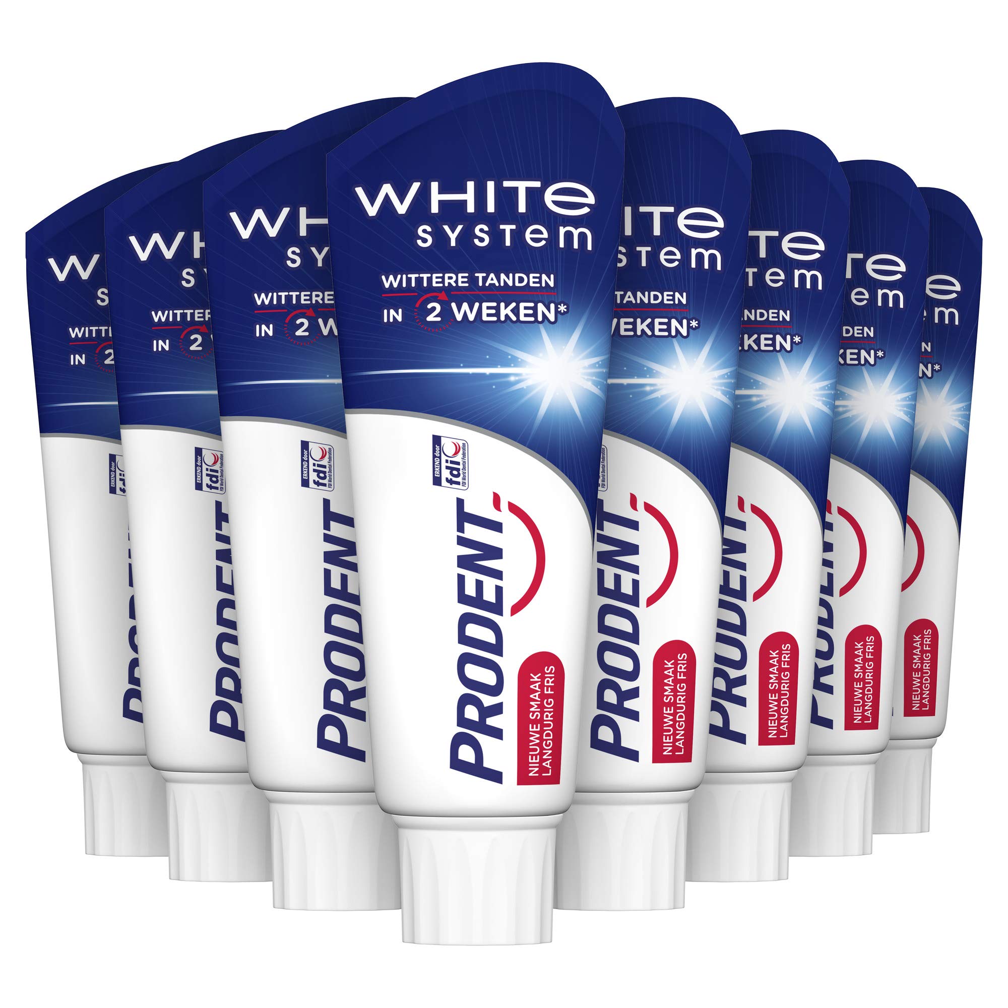 Prodent White System toothpaste not only helps restore the natural whiteness of the teeth, but also helps protect and strengthen your tooth enamel day after day. The Prodent White System toothpaste contains White Activator, a special complex to effectively whiten the teeth in 2 weeks. The stain removal of this toothpaste for whiter teeth has been clinically tested on 76 people. The toothpaste is gentle on the teeth, but tough on discoloration. This formula helps restore the natural whiteness of the teeth. At the same time, the toothpaste, which contains fluoride and calcium minerals, helps the remineralization of tooth enamel. This makes the teeth stronger and better protected. The mild formula cleans tooth enamel and removes stains, while protecting your teeth and providing long-lasting freshness. For a naturally white smile, day in, day out. With Prodent White System toothpaste you can effectively whiten your teeth and also offer them excellent protection. Oral care tips from Prodent: The start of white teeth is a clean toothbrush. Rinse your toothbrush after each use and store it vertically so it can air properly. Brush your teeth at least twice a day and don't forget to use a new toothbrush every three months. INGREDIENTS Calcium Carbonate, Aqua, Hydrogenated Starch Hydrolyzate, Hydrated Silica, Sodium Lauryl Sulfate, Aroma, Sodium Monofluorophosphate, Cellulose Gum, Benzyl Alcohol, Trisodium Phosphate, Sodium Saccharin, CI 74160. INSTRUCTIONS FOR USE Brush your teeth at least twice a day with a pod of toothpaste. Rinse your toothbrush after each use and store it vertically so it can air properly. SAFETY WARNING For abdominal use only. No locks. Keep out of reach of children. Discontinue use and consult a dentist if irritation occurs. MANUFACTURER CONTACT INFORMATION PO Box 160, 3000 AD Rotterdam See moreThe toothpaste has a new taste for long-lasting freshness. Contains White Activator to effectively whiten teeth. A whitening toothpaste that cleans the enamel and removes stains. The toothpaste helps restore the natural whiteness of the teeth. Prodent White System toothpaste for whiter teeth in just 2 weeks.Prodent White System Tandpasta, voor wittere tanden in 2 weken - 12 x 75 ml - Voordeelverpakking Prodent White System tandpasta helpt niet alleen de natuurlijke witheid van de tanden te herstellen, maar helpt ook dag na dag je tandglazuur te beschermen en te versterken. De Prodent White System tandpasta bevat White Activator, een speciaal complex om de tanden doeltreffend witter te maken in 2 weken tijd. Het verwijderen van vlekken van deze tandpasta voor wittere tanden is klinisch getest bij 76 personen. De tandenpasta is zacht voor de tanden, maar hard tegen verkleuring. Deze formule helpt de natuurlijke witheid van de tanden te herstellen. Tegelijkertijd helpt de tandpasta, die fluoride en calciummineralen bevat, de remineralisatie van het tandglazuur. Zo worden de tanden sterker en beter beschermd. De milde formule reinigt het tandglazuur en verwijdert vlekken, terwijl het je tanden beschermd en een langdurige frisheid geeft. Voor een natuurlijk witte glimlach, dag in dag uit. Met Prodent White System tandpasta poets je de tanden dus doeltreffend wit, en bied je de tanden ook nog een uitstekende bescherming. Mondverzorging tips van Prodent: Het begin van witte tanden is een schone tandenborstel. Spoel je tandenborstel na elk gebruik af en berg hem verticaal op zodat hij goed kan luchten. Poets minimaal 2 keer per dag je tanden en vergeet niet elke drie maanden een nieuwe tandenborstel te gebruiken. INGREDIËNTEN Calcium Carbonate, Aqua, Hydrogenated Starch Hydrolysate, Hydrated Silica, Sodium Lauryl Sulfate, Aroma, Sodium Monofluorophosphate, Cellulose Gum, Benzyl Alcohol, Trisodium Phosphate, Sodium Saccharin, CI 74160. GEBRUIKSAANWIJZING Poets minimaal 2 keer per dag je tanden met een peulje tandpasta. Spoel je tandenborstel na elk gebruik af en berg hem verticaal op zodat hij goed kan luchten. VEILIGHEIDSWAARSCHUWING Alleen voor buikgebruik. Sluizen niet. Houd buiten bereik van kinderen. Stop met gebruik en raadpleeg een tandarts als irritatie optreedt. CONTACTINFORMATIE FABRIKANT Postbus 160, 3000 AD Rotterdam Meer bekijkenDe tandpasta heeft een vernieuwde smaak voor langdurige frisheid. Bevat White Activator om de tanden doeltreffend witter te maken. Een whitening tandpasta die het glazuur reinigt en vlekken verwijdert. De tandpasta helpt de natuurlijke witheid van de tanden te herstellen. Prodent White System tandpasta voor wittere tanden in slechts 2 weken.