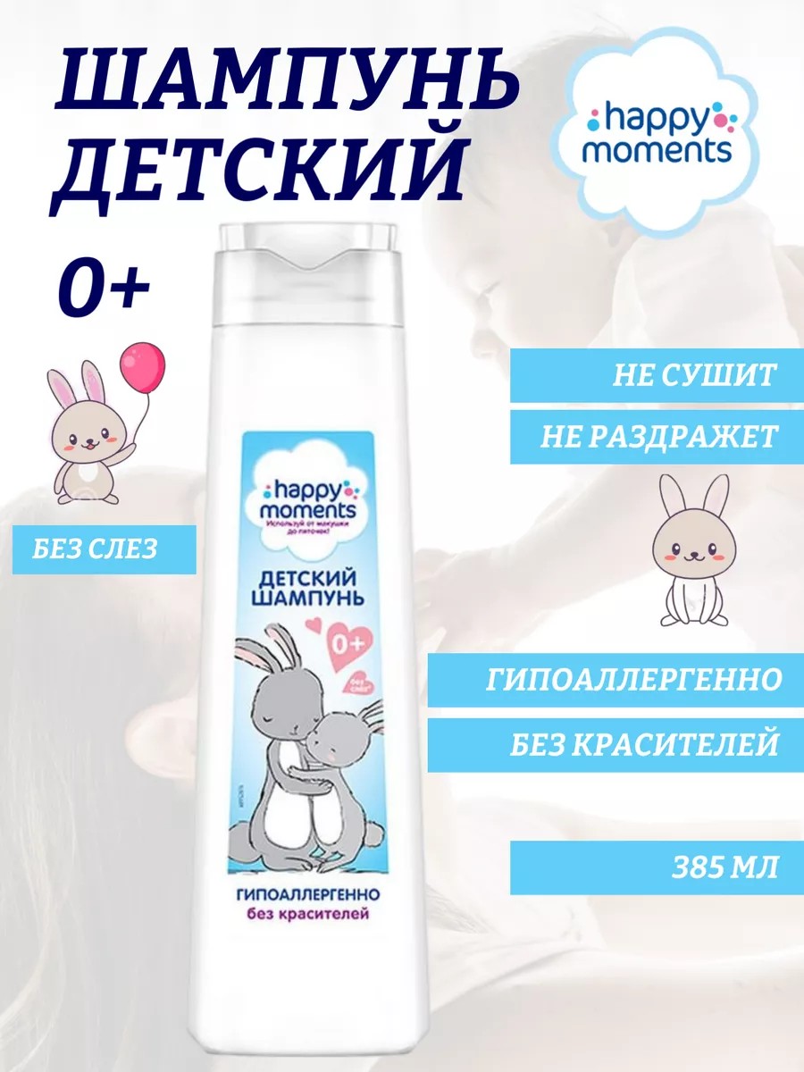 Шампунь детский гипоаллергенный Happy Moments специально разработан для ухода за кожей и волосами новорожденного малыша. Шампунь без красителей, не вызывает слез, Он не щиплет глазки, бережно очищает и обладает приятным ароматом. Детский шампунь Happy Moments содержит в составе экстракты ромашки и алоэ вера. Ромашка смягчает и успокаивает, устраняет сухость и шелушение. Алоэ вера, богатый активными веществами, увлажняет кожу. Детский шампунь для волос не сушит и не раздражает кожу.